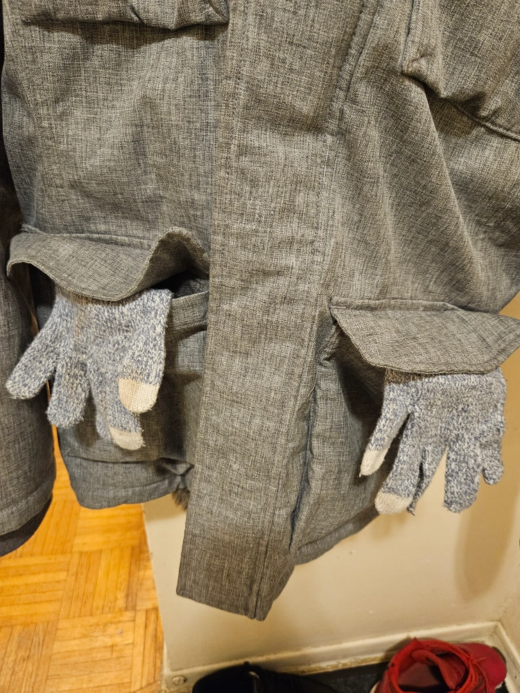 Very warm, has 4 pockets outside ( also comes with free gloves ) and a pocket inside.