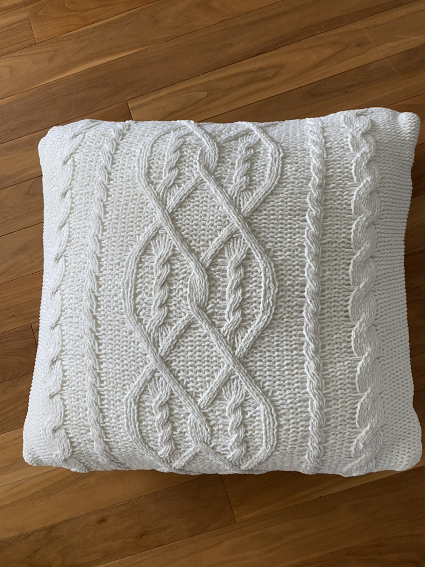 Purchased but too large for our couch. They measure 20” x 23” approximately. Clean - basically never used.
