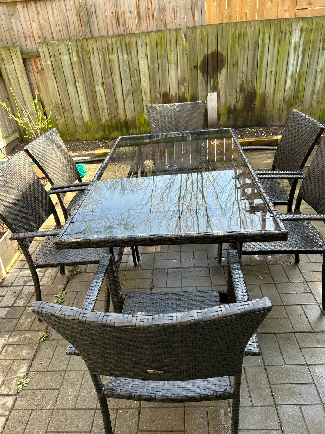 A Patio set table with glass top , 6 chairs