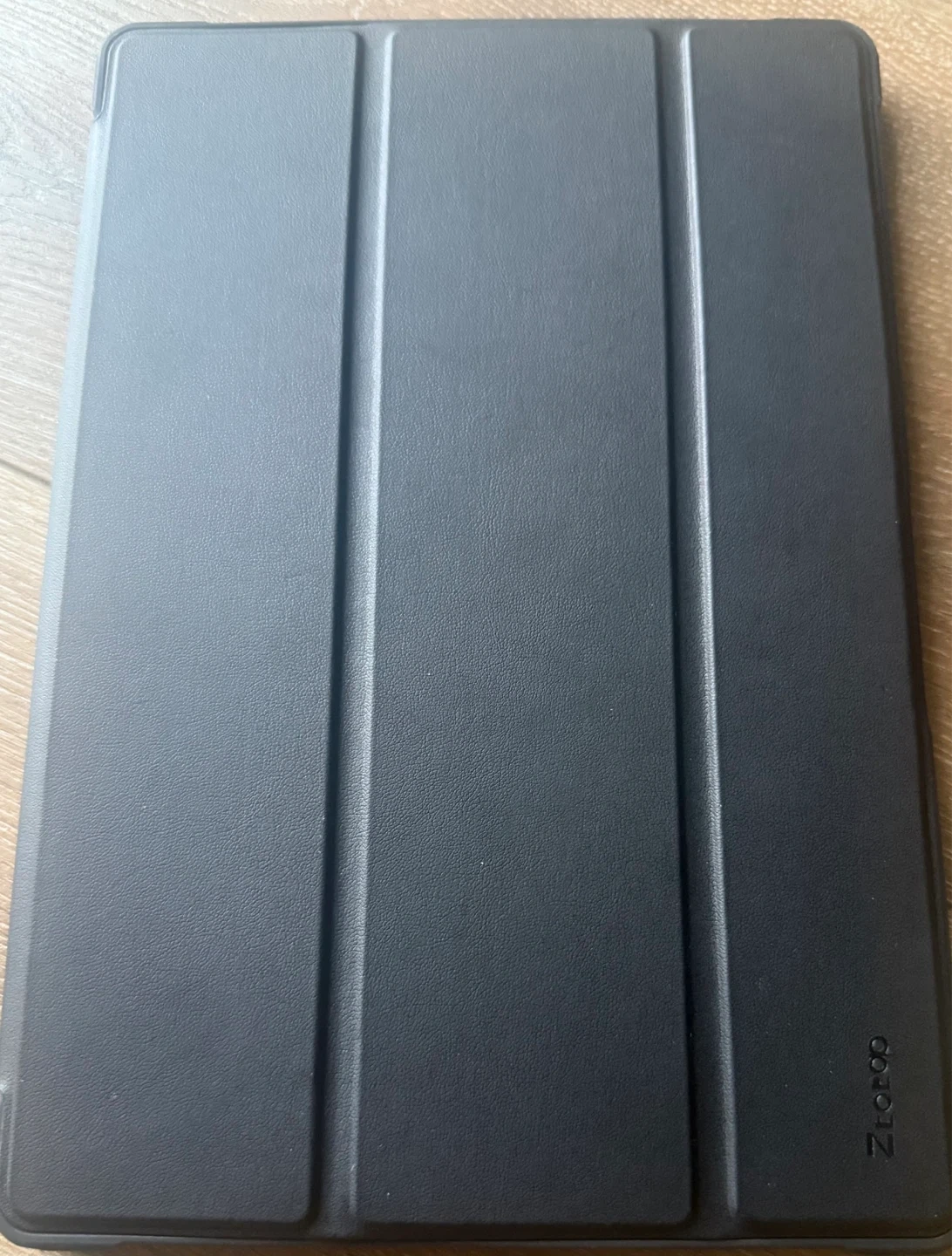 Protective folio case for a tablet. Features a tri-fold design for versatile viewing. Offers durable protection for your device.