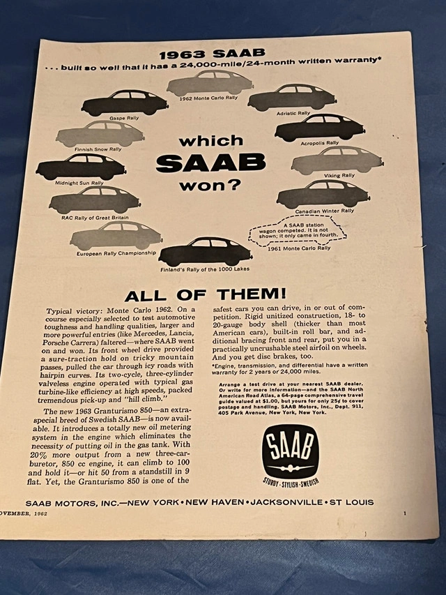 101963 Saab Granturismo 850 Original Magazine Ad Size: 7-3/4" X 11" More Info: Art