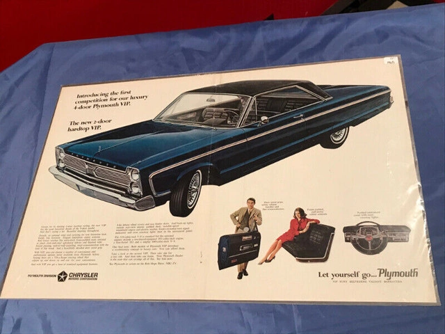101966 Plymouth VIP Double Page Original Ad Size: 13-3/4" X 20-1/2". More Info: Art. Let me know if you're interested!