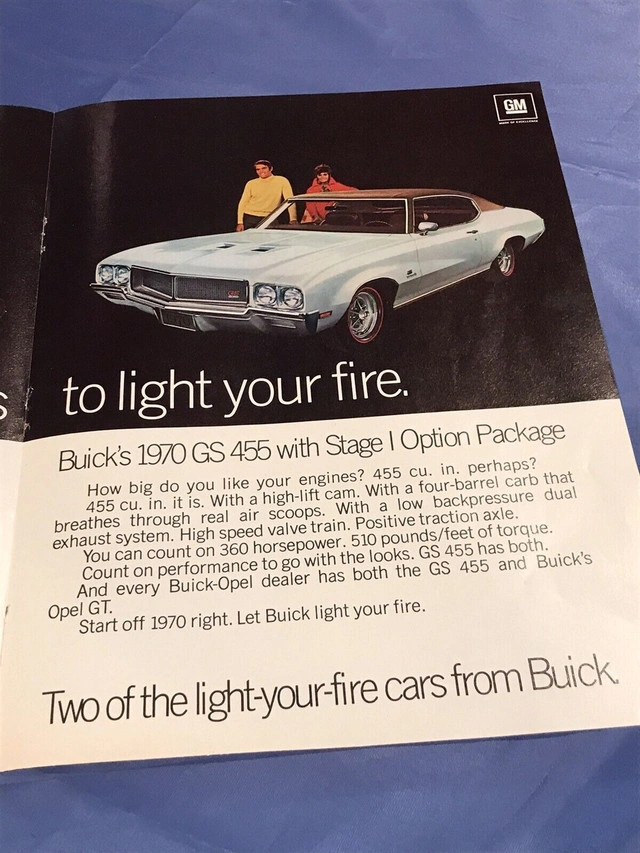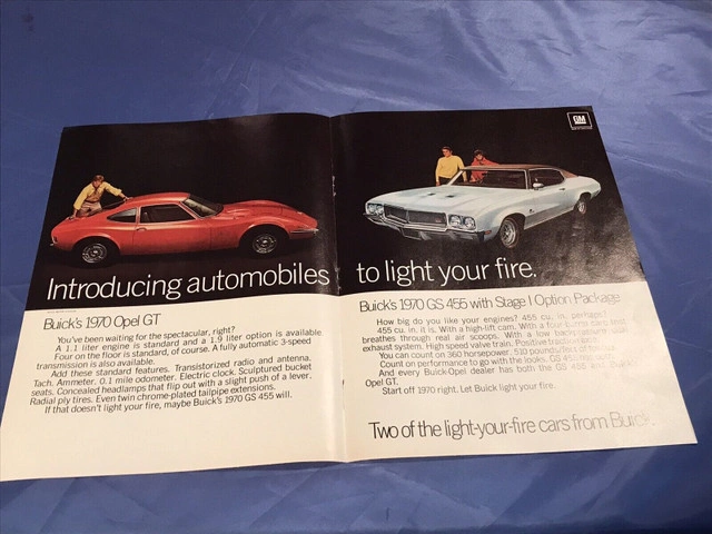 51970 Buick Opel GT, GS 455 Stage 1 Option Package Original 2 Page Ad Size: 16" 10-1/2"