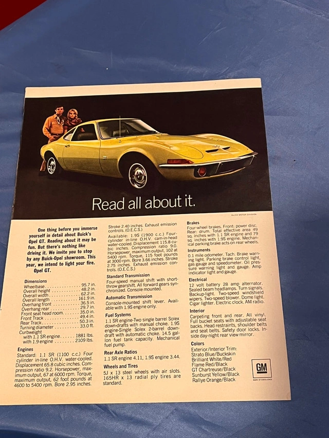 101970 Buick Opel GT Original Magazine Ad Size: 8" X 10-3/4" More Info: Art