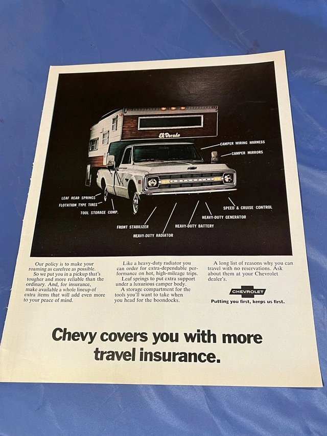 51970 Chevrolet Truck with Camper Original Ad Size: 10-1/4" X 13-1/4" Condition: Used - Good More Info: Art For Sale By: Owner Curbside pick up: Yes Cash accepted: Yes