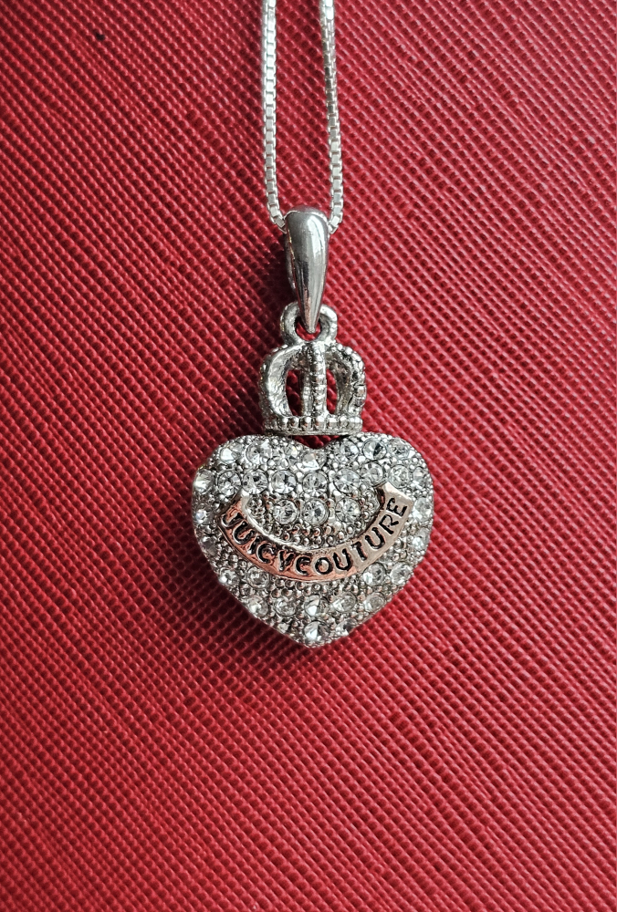 Beautiful Juicy Couture signature pavée rhinestone silver tone heart pendant that features a crown 👑 ♥️