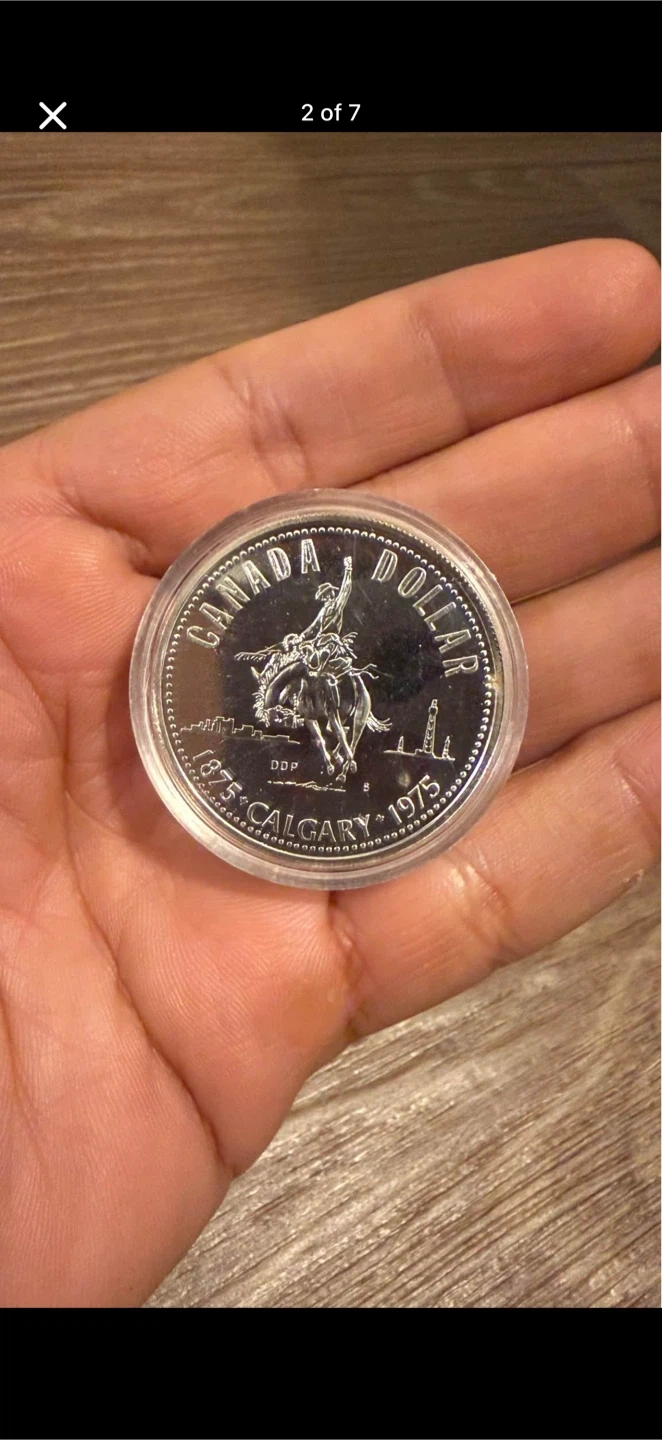 73Selling a 1975 Canada Dollar coin commemorating Calgary. It's in great condition! 50% silver