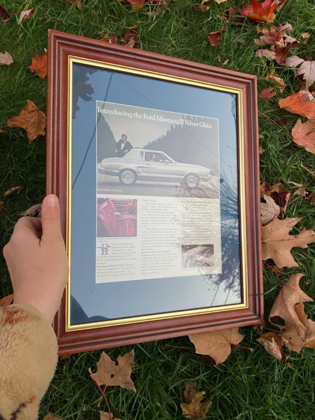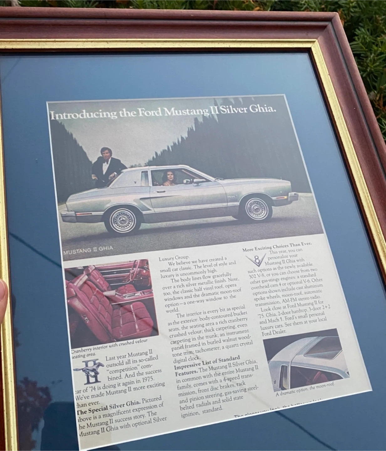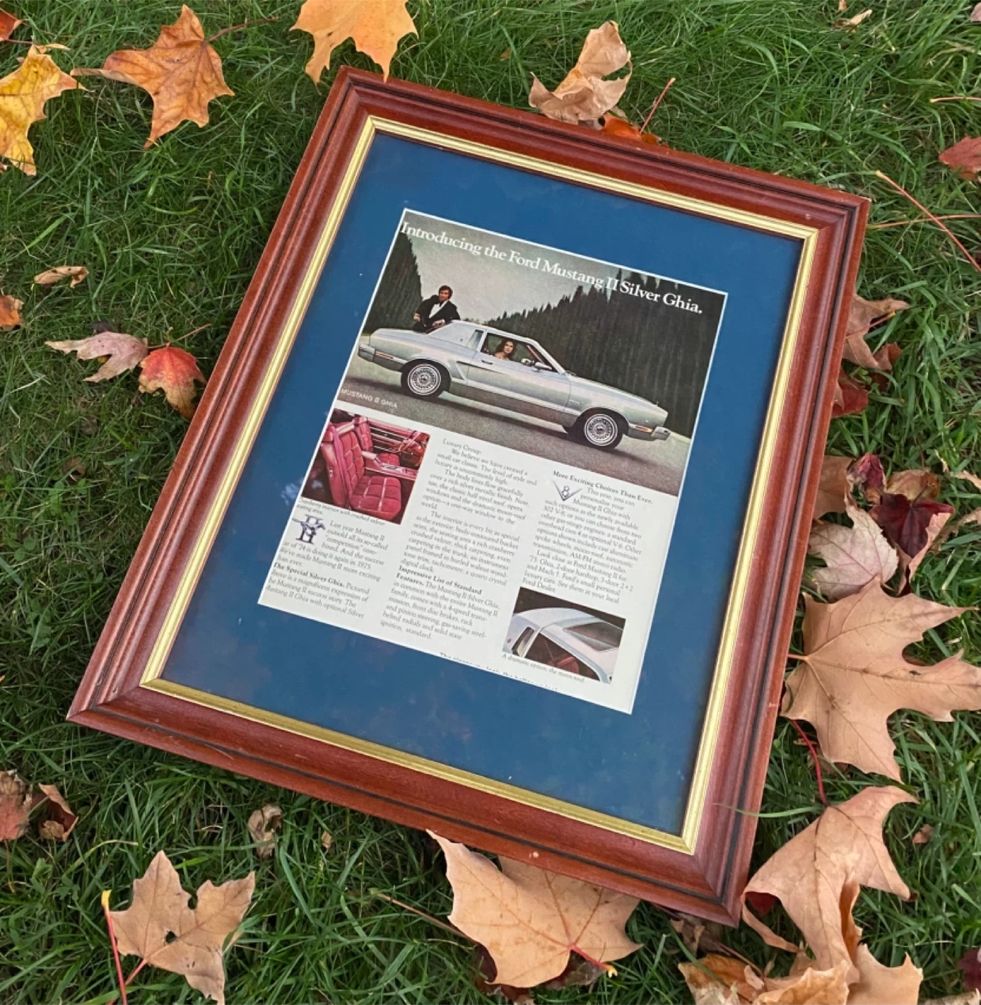 961975 ford mustang II magazine advert. Wooden frame is in fine condition. Pick up near runnymede and Dundas.