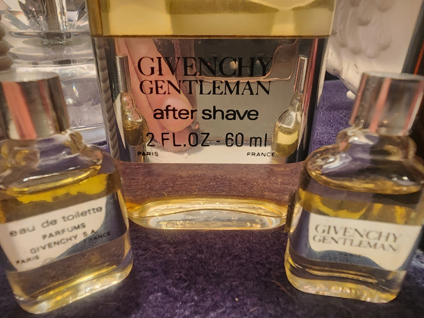A vintage perfume collection featuring Ted Lapidus, Givenchy Gentleman, and Chaps Ralph Lauren, each bottle with its unique scent profile. * Ted Lapidus By Houbigant Pour Homme Apres-Rasage After Shave 3.33 fl oz - 100 ml Original Formula Full Bottle * Givenchy Gentleman After Shave Original Formula 2 fl.oz - 60ml Slightly Used with 2 small full miniature bottles * Chaps Ralph Lauren Cologne 55 ml, Full Bottle These scents have been carefully stored and are looking for a new home. If you see this ad, the perfumes are still available, ready to add a touch of classic aroma to your collection!