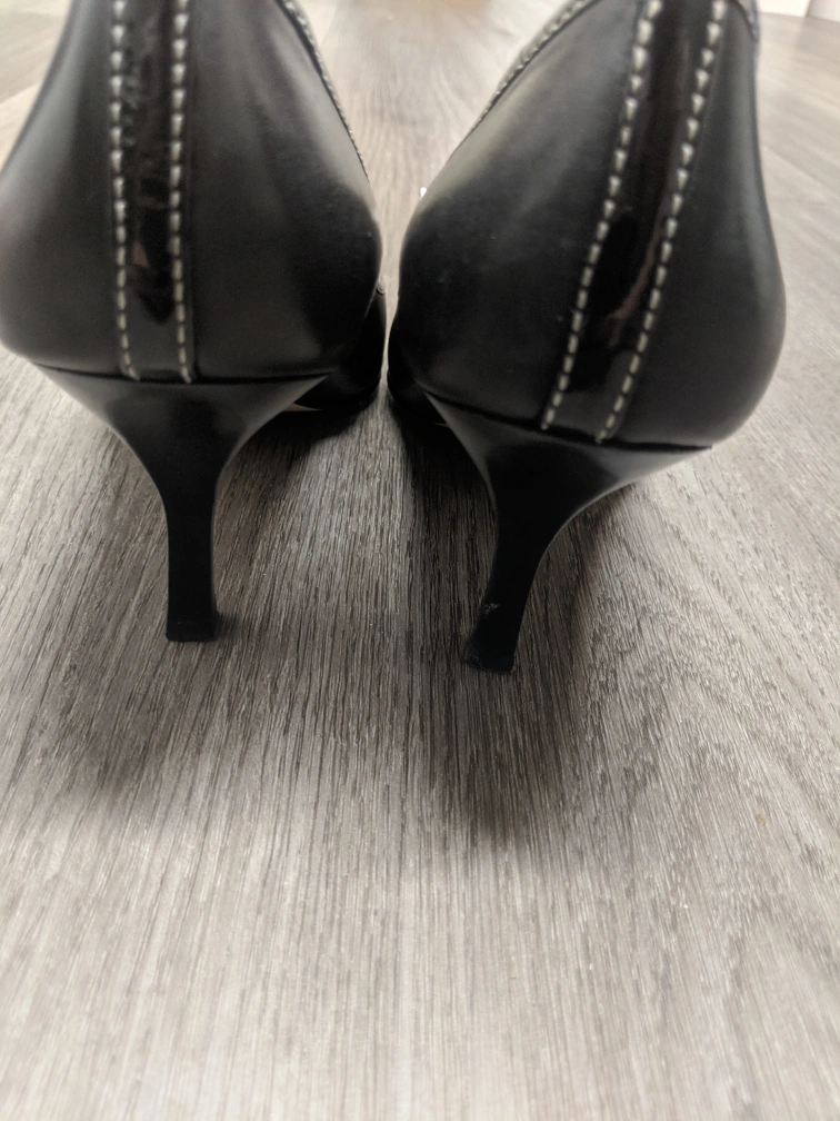 New Black heels which I wore once. Selling it because it pencil heels aren't my thing. Has no damage, stains, or marks.