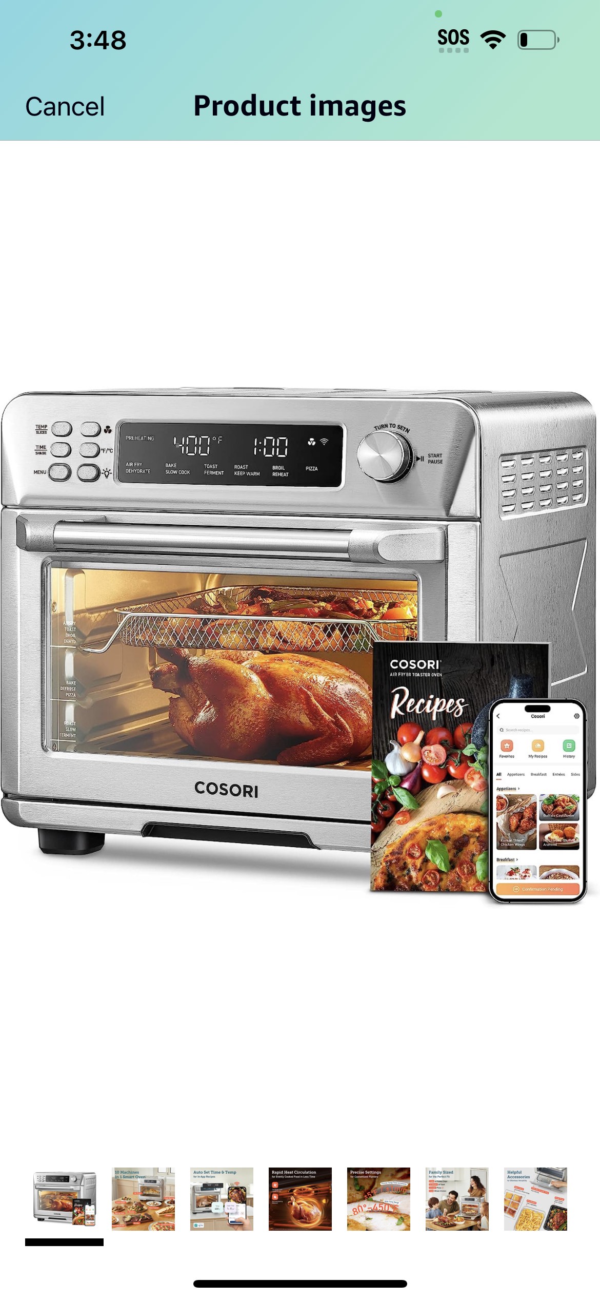 COSORI Toaster Oven Air Fryer Combo, 12-in-1, 26QT Convection Oven Countertop, Stainless Steel with Toast Bake and Broil, Smart, 6 Slice Toast, 12'' Pizza, 75 Recipes&Accessories