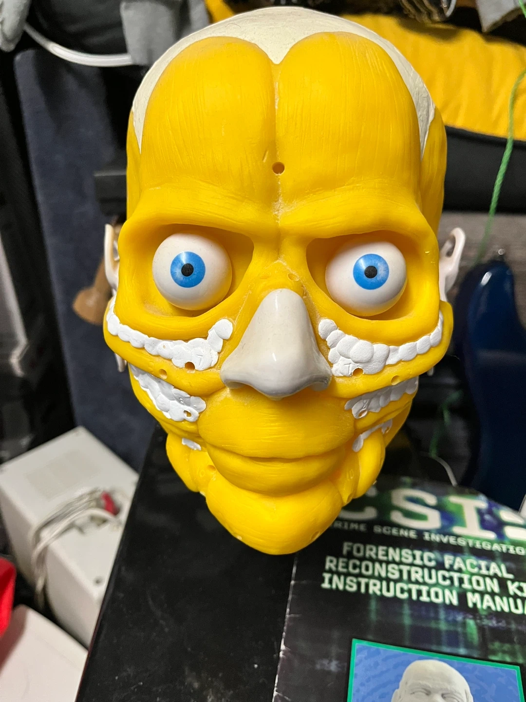 This CSI Forensic Facial Reconstruction Kit includes a skull model with muscle and ear details. It comes with an instruction manual for learning facial reconstruction techniques. It's a great tool for educational purposes or crime scene investigation enthusiasts!