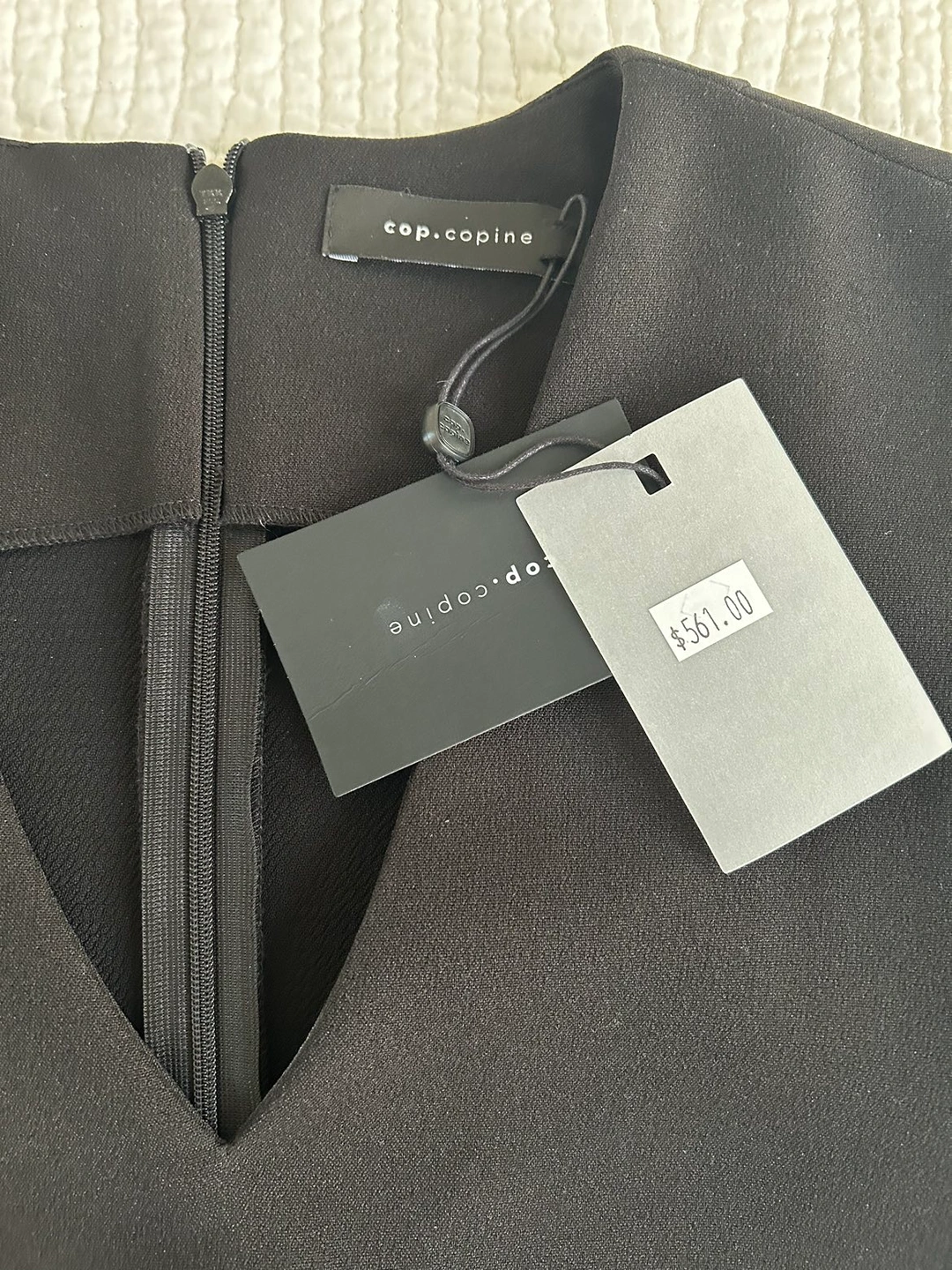 Size 36 (S). Gorgeous quality dress from French Brand Cop Copine. Original tag still attached with a price of $561 before tax! The built-in angled belt is super flattering.