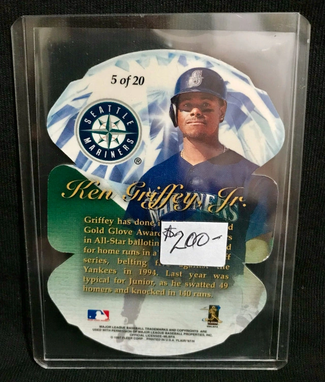 This is a 1997 Flair Showcase Diamond Cuts Ken Griffey Jr. #5 baseball card, a true gem for any collector, and it is in great condition. This card is a standout piece, featuring Ken Griffey Jr. in his prime. As they say, if the ad is up, it's still available, so don't miss out!