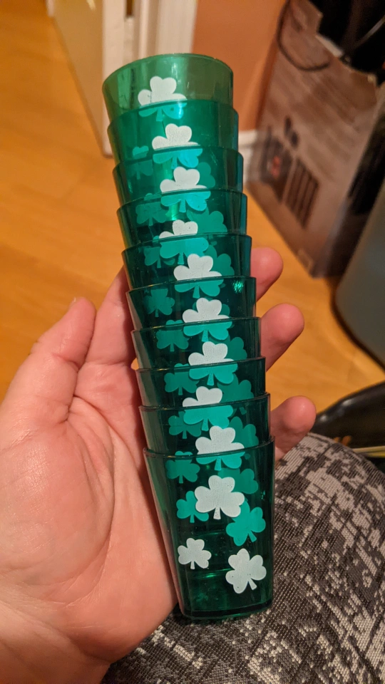 10 reusable plastic shot glasses St Patrick's Day themed