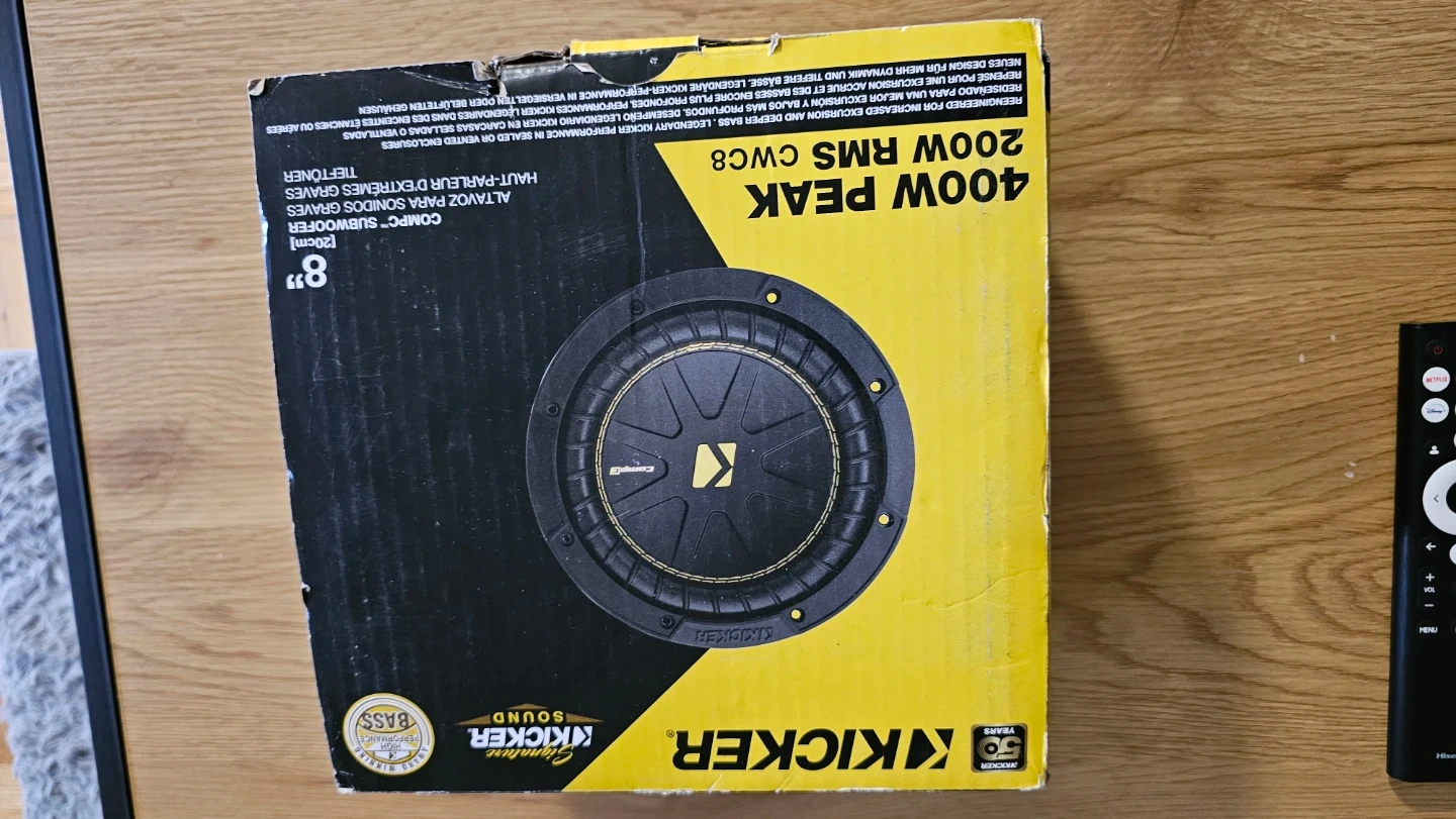 Selling a Kicker CompC CWC8 8" subwoofer. It's in new condition and comes in the original box. This subwoofer has a peak power of 400W and RMS of 200W. Get ready to upgrade your car audio!