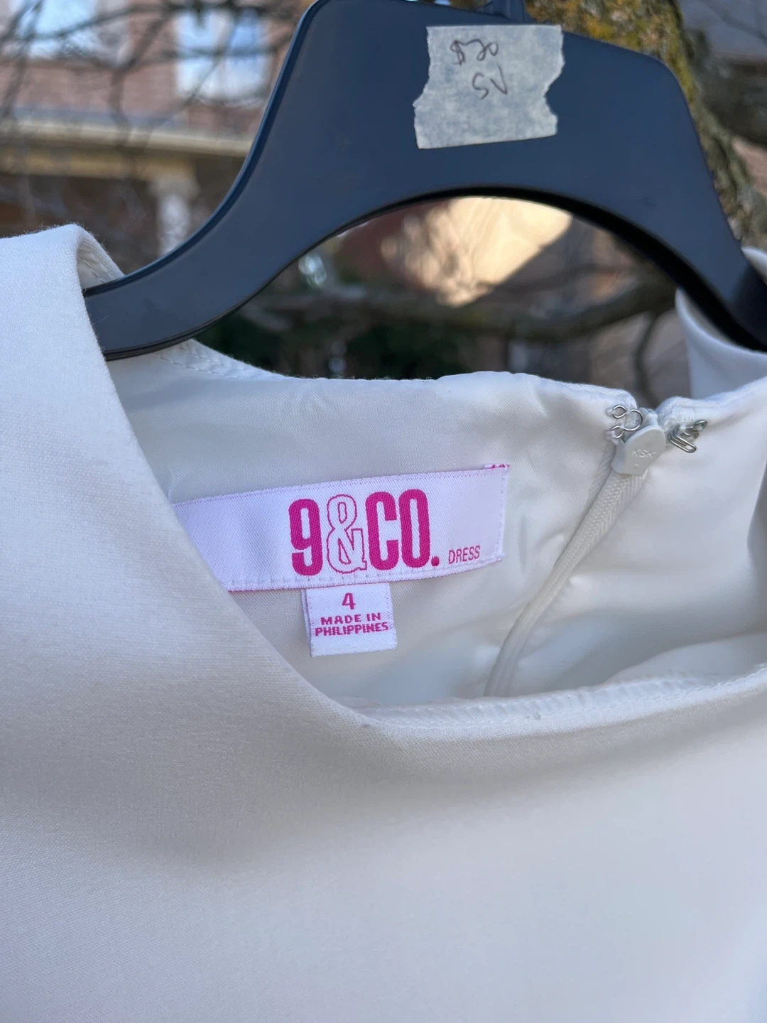 Selling a cute 9&Co. dress in size 4. The dress features a lovely colour block design with white, black, and blue. Perfect for any occasion!