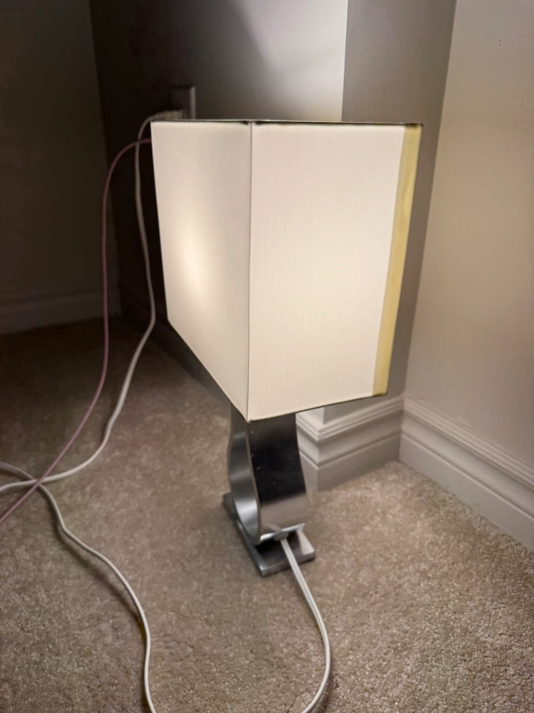 P2- This lamp's modern design fits well in living spaces. Perfect for reading or ambient lighting in any room.