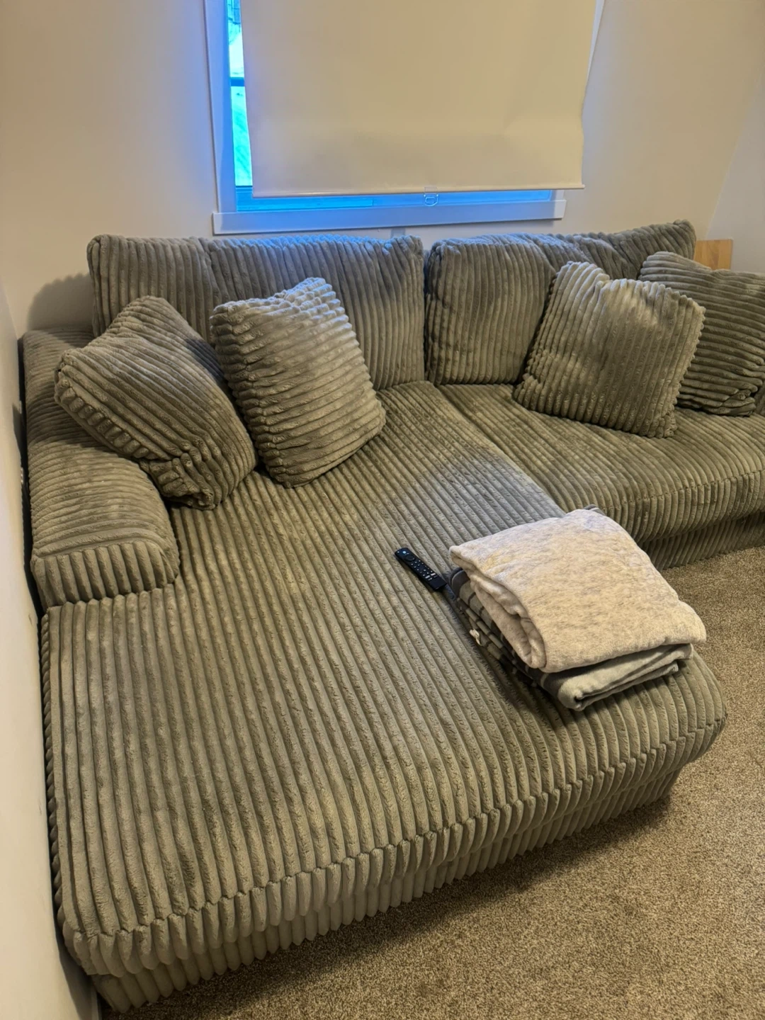 Almost Brand New Lindyn Sectional with XL Ottoman. Paid over $3500 less than a year ago. I am only selling because my sister needs to move in and this is in our spare room. Asking $2800 OBO. Feel free to PM for any questions. Not in a huge rush to sell. Just looking to try to get most of our money back hence the OBO. Shoot me some offers :)