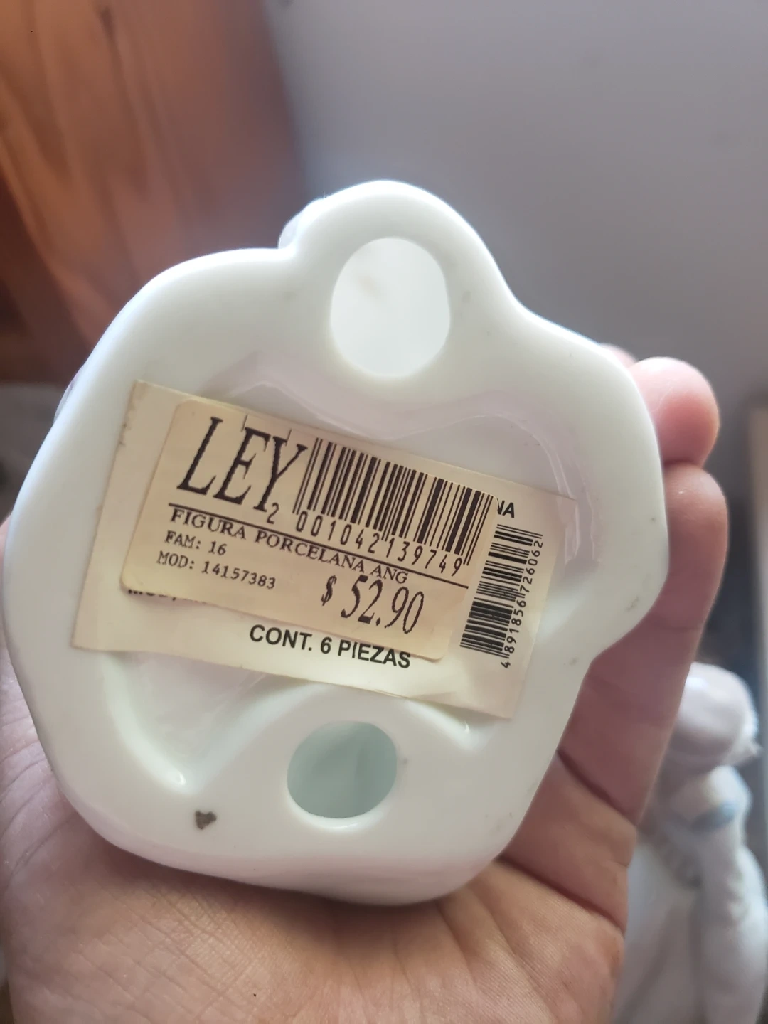 This is a LEY porcelain angel figurine holding a violin. It's part of FAM: 16 and has a model number of 14157383. The figurine contains 6 pieces.