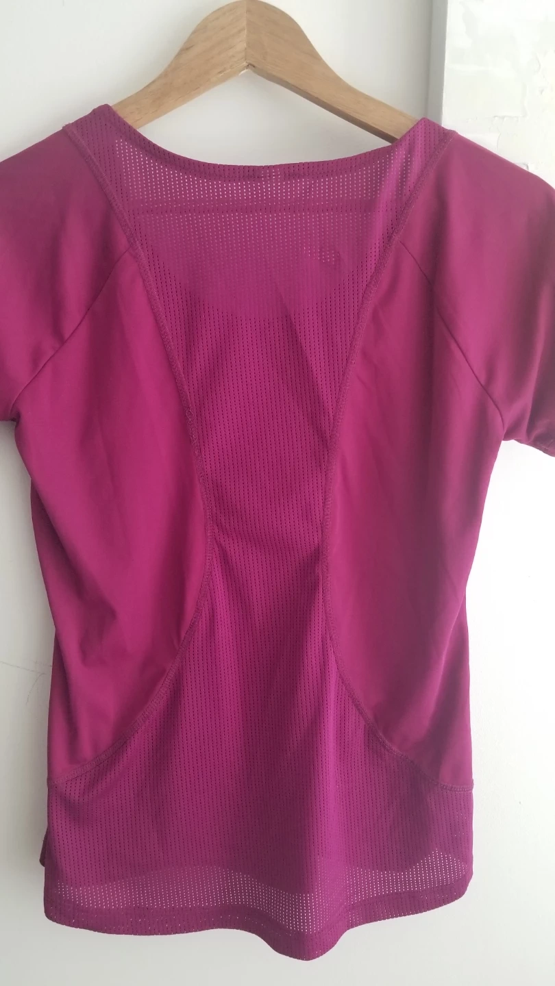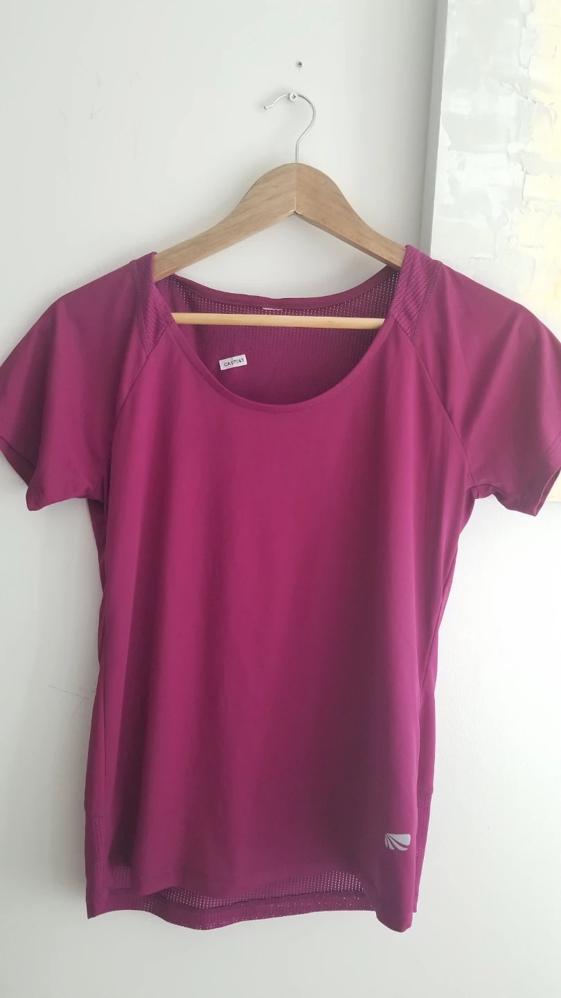 🎀Women's athletic t-shirt in a vibrant magenta colour. It features a scoop neckline and short sleeves with mesh panelling for breathability.