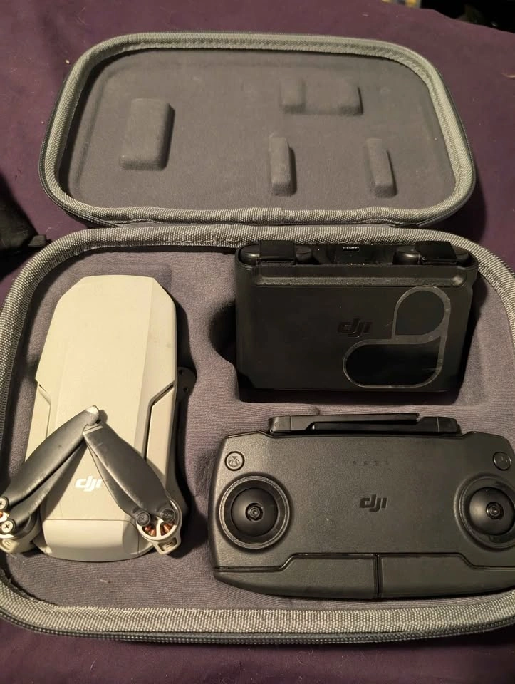 The DJI Mavic Mini 1. 2 batteries, controller and carrying case.