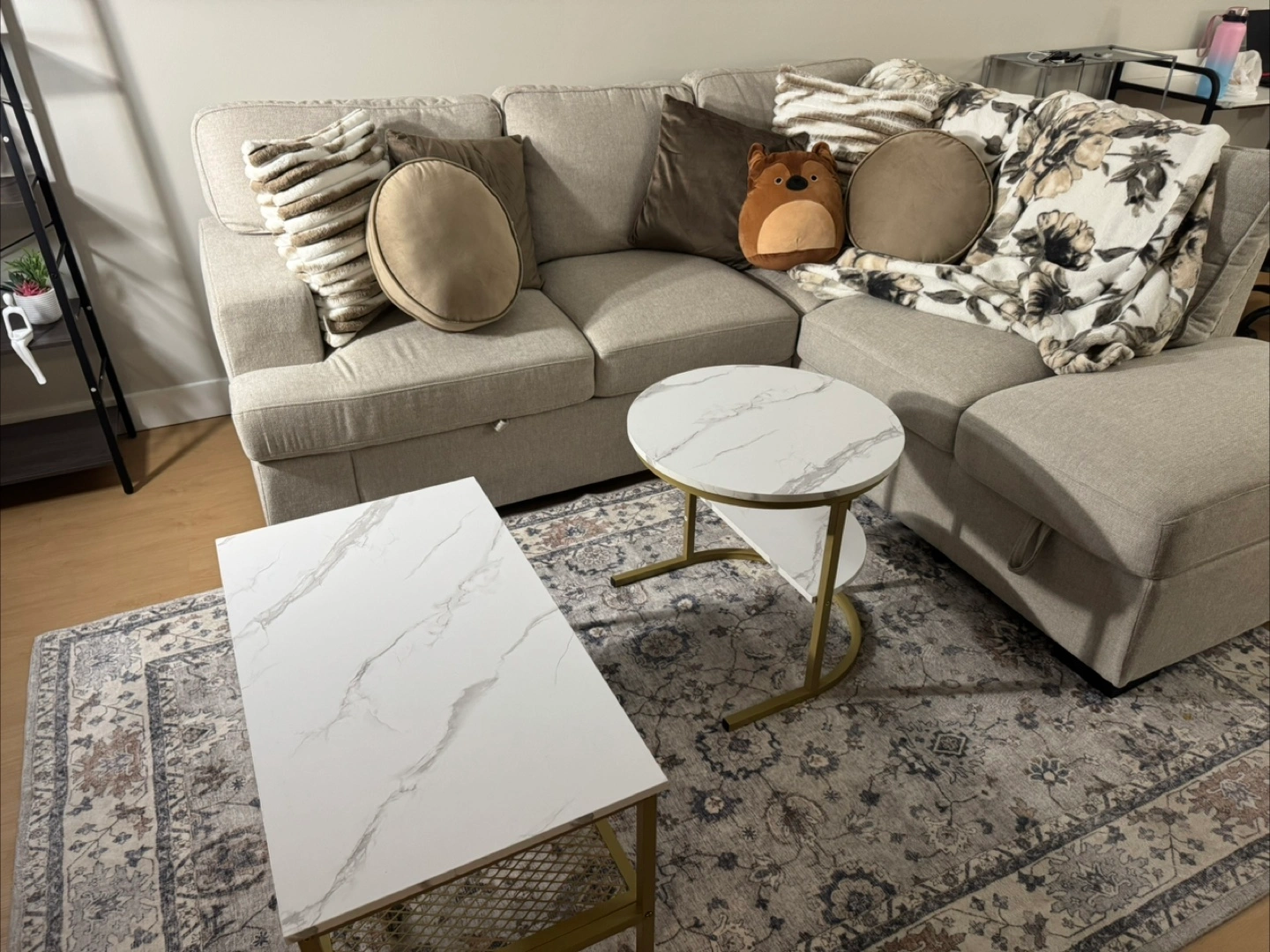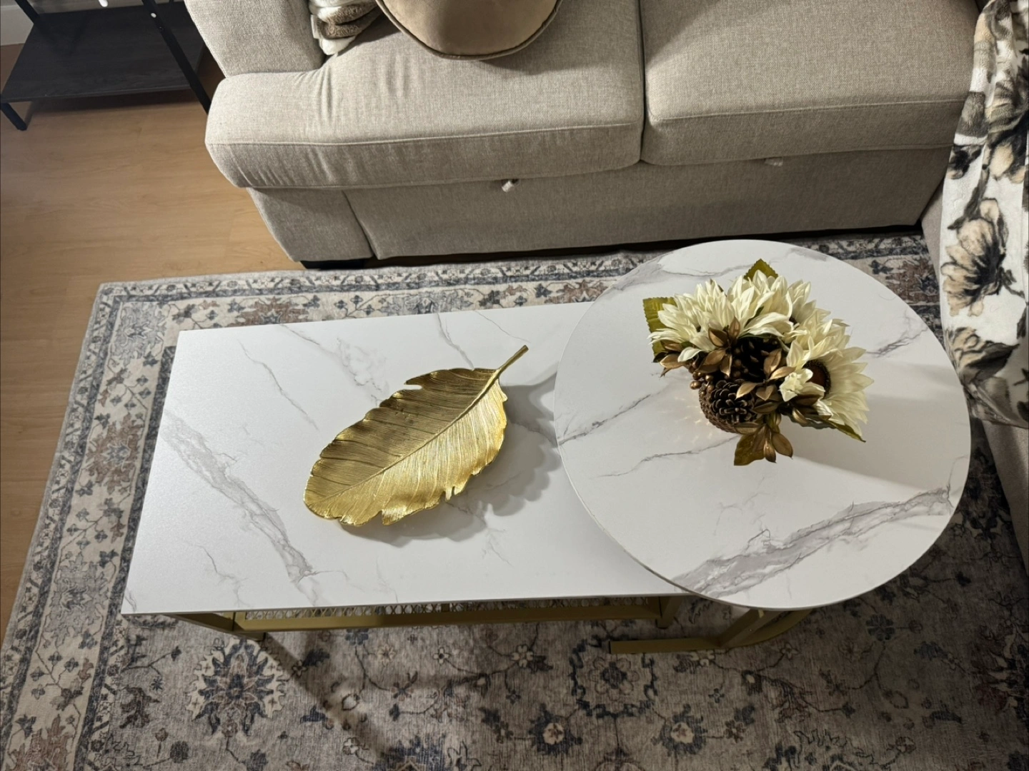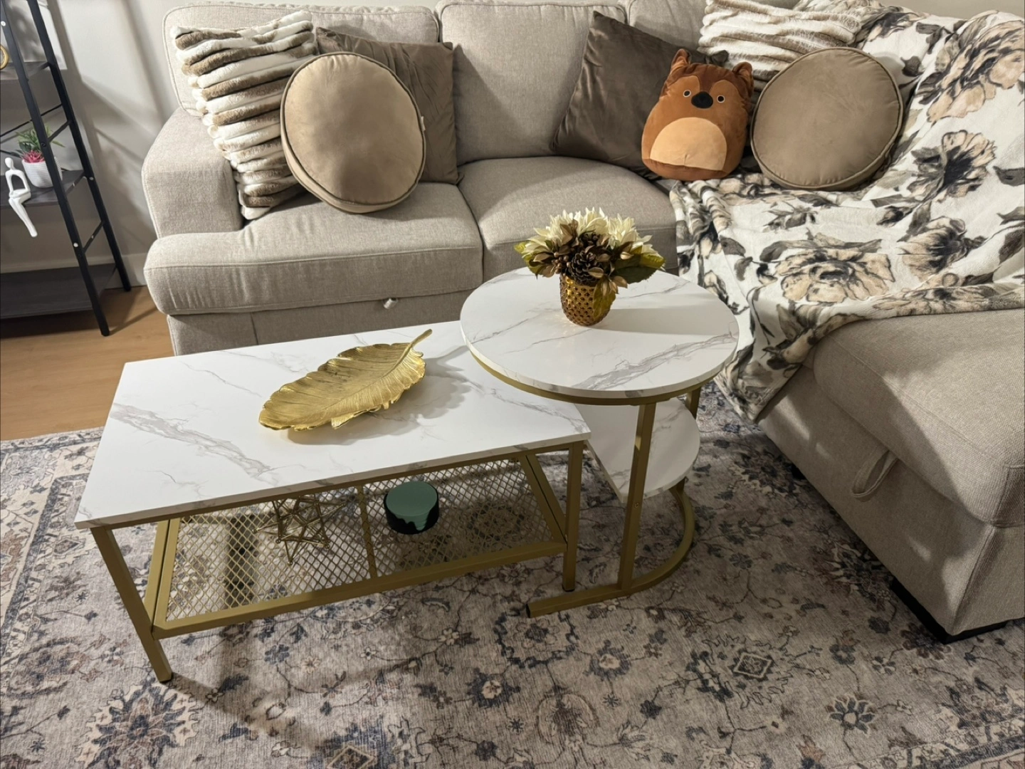 Selling a gently used 2-piece coffee table set in excellent condition. Includes one large rectangular table and one smaller round table that can be used together or separately.