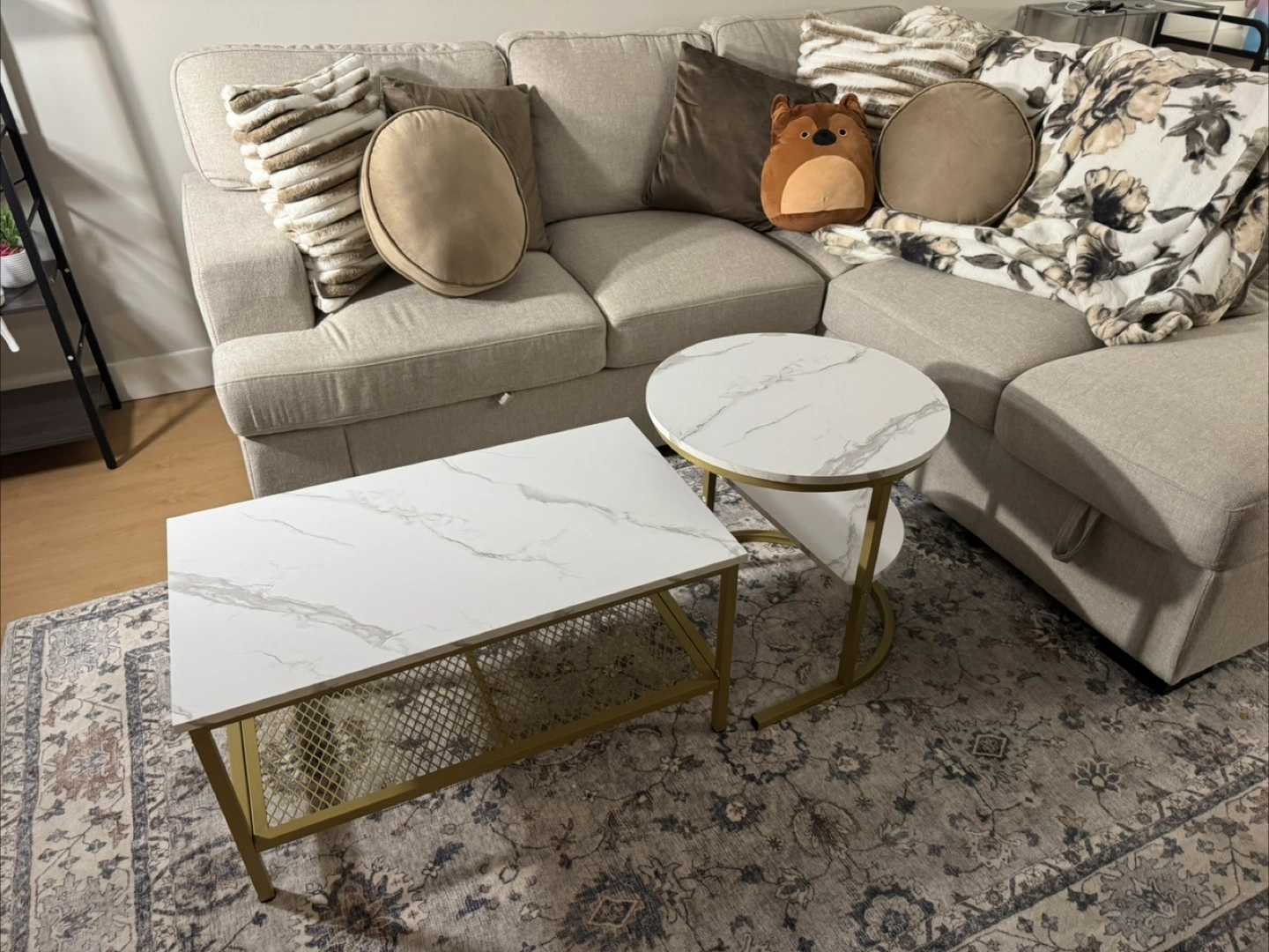 Selling a gently used 2-piece coffee table set in excellent condition. Includes one large rectangular table and one smaller round table that can be used together or separately.