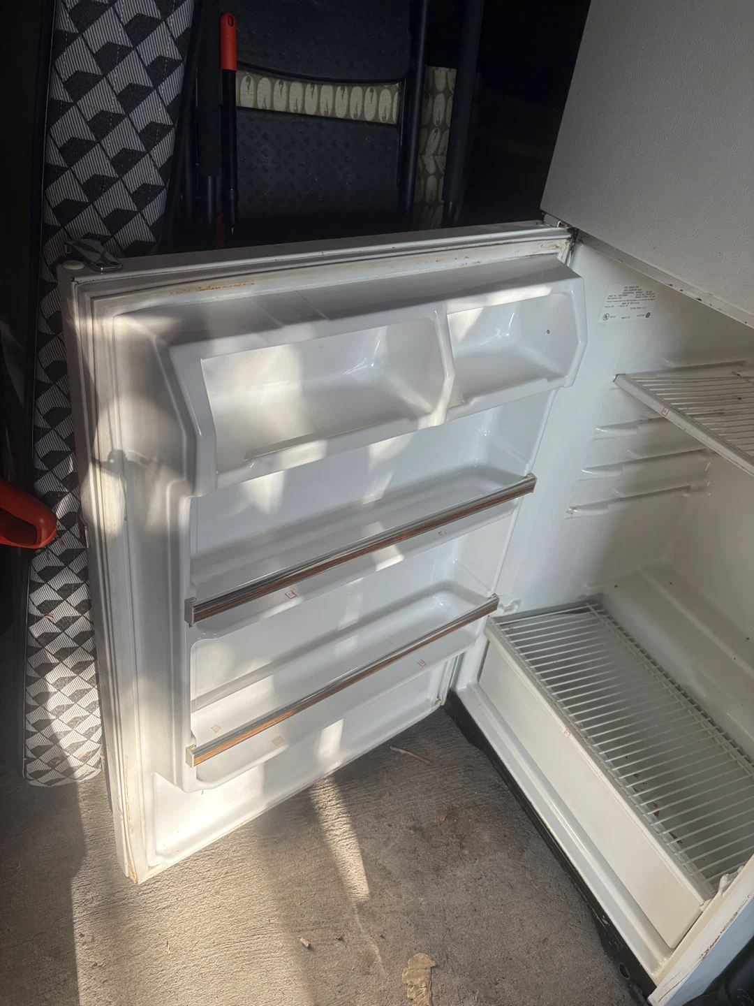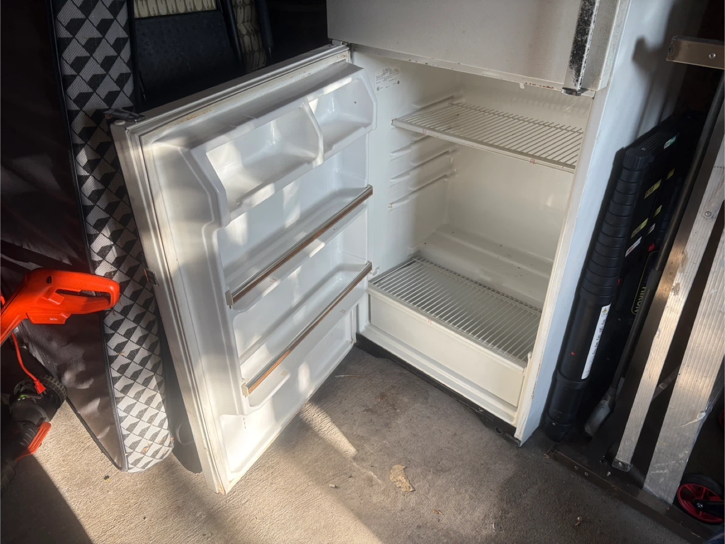 Selling a vintage McClary refrigerator. It's white and has a top freezer compartment. It shows signs of use, but it's still functional.