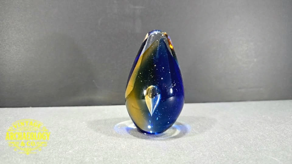 ART GLASS PAPERWEIGHT COBAL BLUE AND GOLD DESIGN