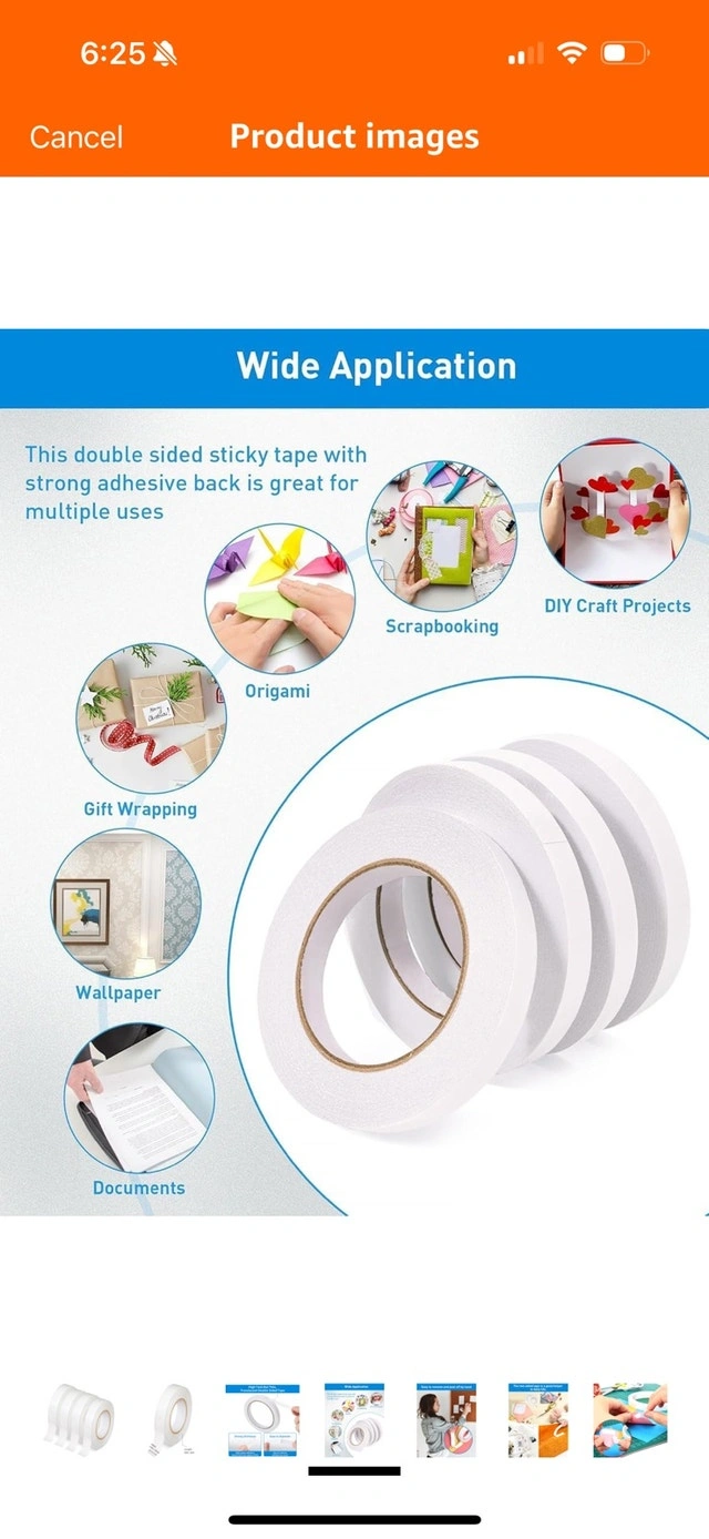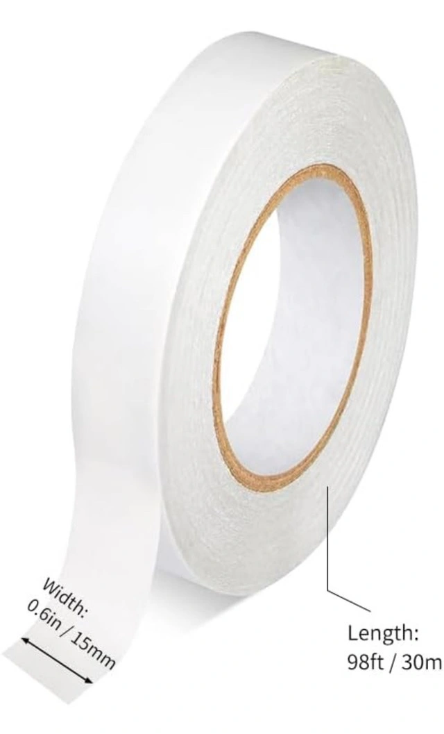 I'm offering four rolls of brand new double-sided tape, each roll measuring 0.6 inches wide and 98 feet long (15mm x 30m), perfect for all your crafting needs. This high-quality tape provides a strong adhesive bond, making it ideal for scrapbooking, DIY projects, gift wrapping, and more!