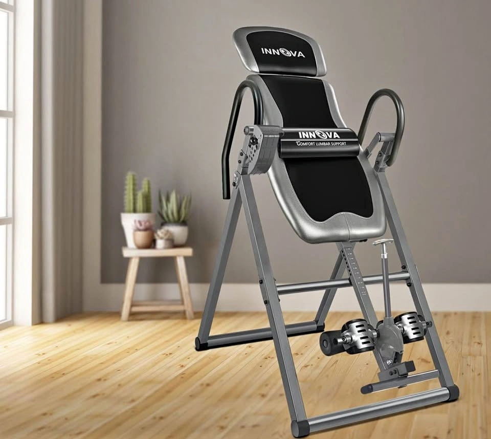 Brand new Innova ITX9600 inversion table, never used. Still in the box. Great for back pain relief, spinal decompression, and improving posture and flexibility. Features include an adjustable headrest pad, heavy-duty steel frame, adjustable height settings (fits most users), foldable for storage, and a comfortable ankle holding system.