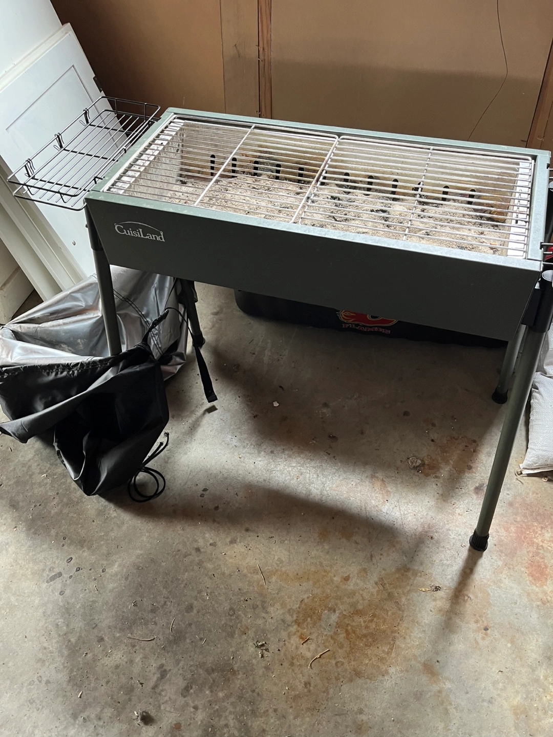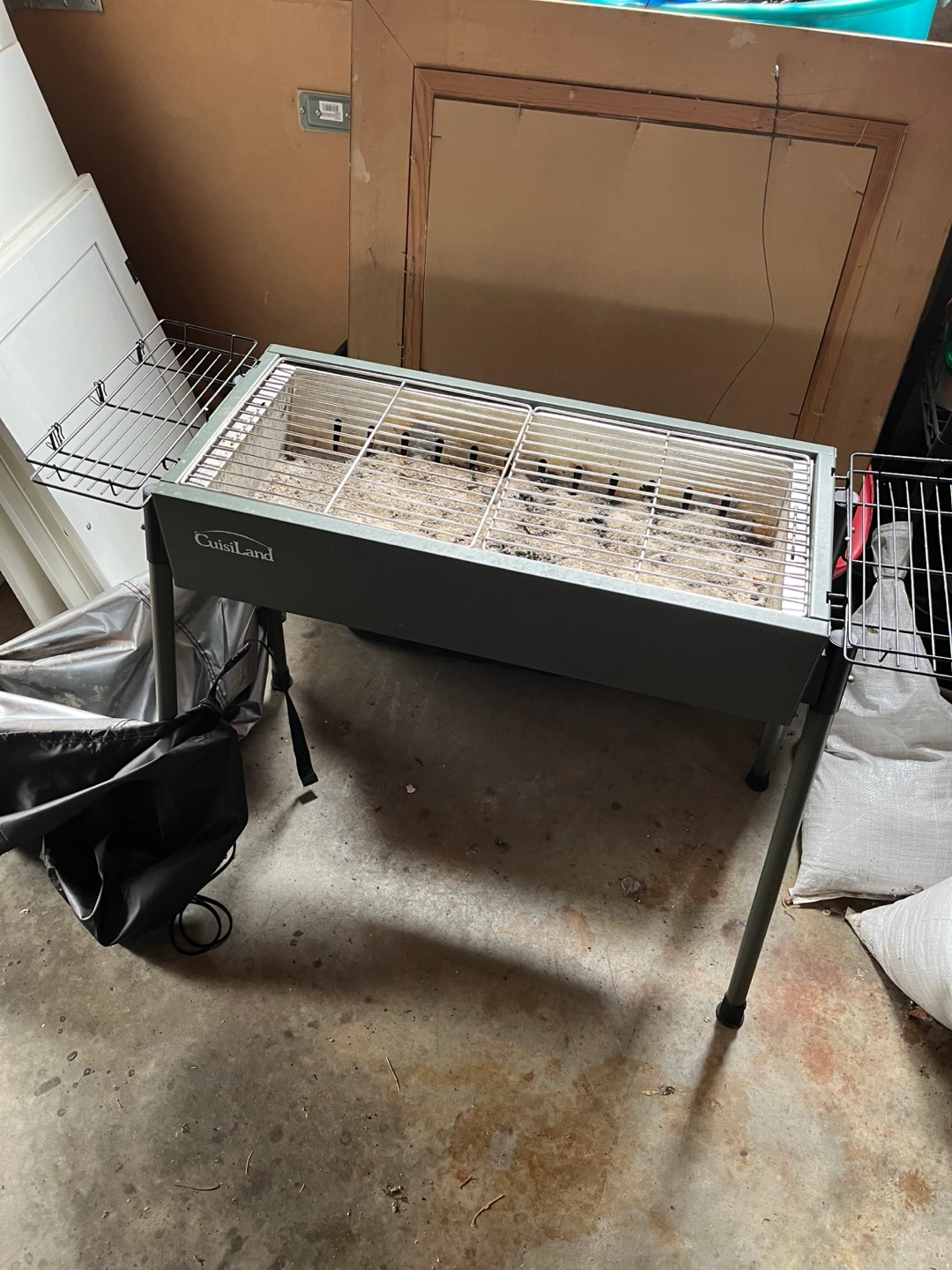 Selling a Cuisiland portable charcoal grill. It's in used condition and would be great for camping or backyard BBQs! Comes with a black cover and a side racks for grilling tools. Legs can be removed for storage or packing for camping trip.