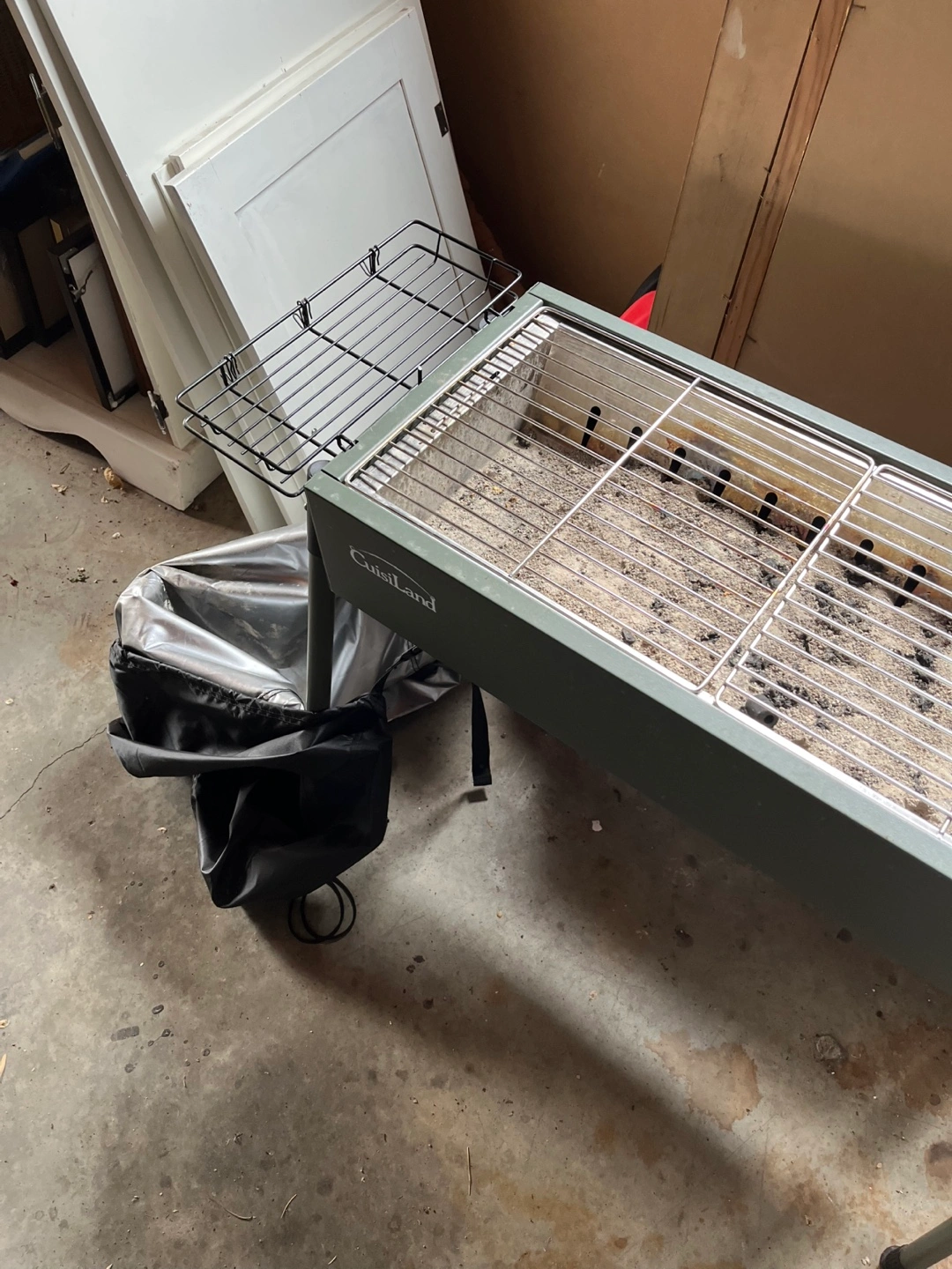 Selling a Cuisiland portable charcoal grill. It's in used condition and would be great for camping or backyard BBQs! Comes with a black cover and a side racks for grilling tools. Legs can be removed for storage or packing for camping trip.