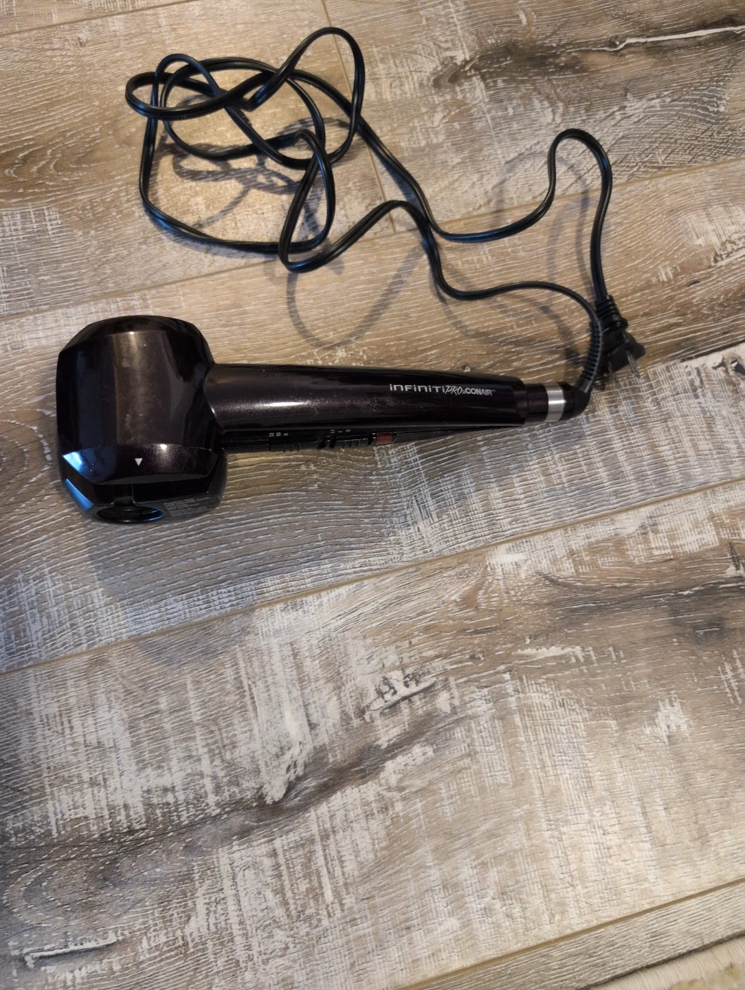 Conair Infiniti Pro Curl Secret automatic curler in dark purple. It creates beautiful curls quickly. This hair curler is designed for easy use.