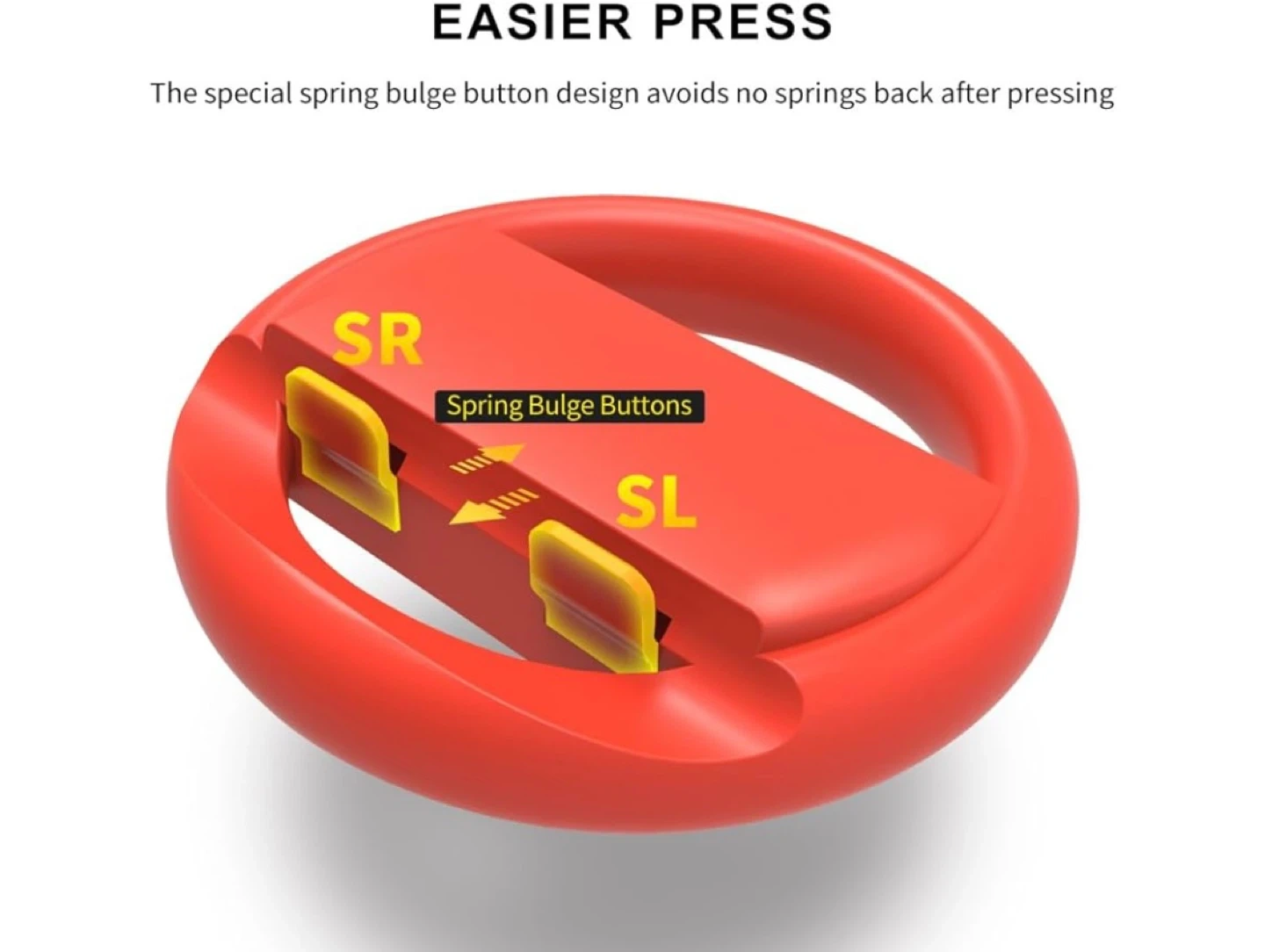 These Nintendo Switch steering wheels are designed for better gaming comfort. They feature a matte and sloping design for holding ease. Elastic rubber pads provide firmer protection and stabilization for your Joy-Cons.