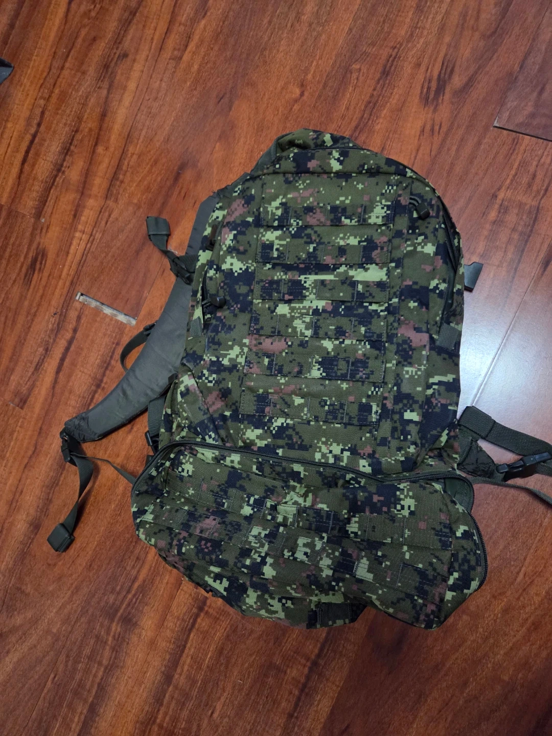 A versatile camouflage backpack for your outdoor adventures. It features multiple compartments for organization and padded shoulder straps for comfort. This pack is great for hiking or camping trips!