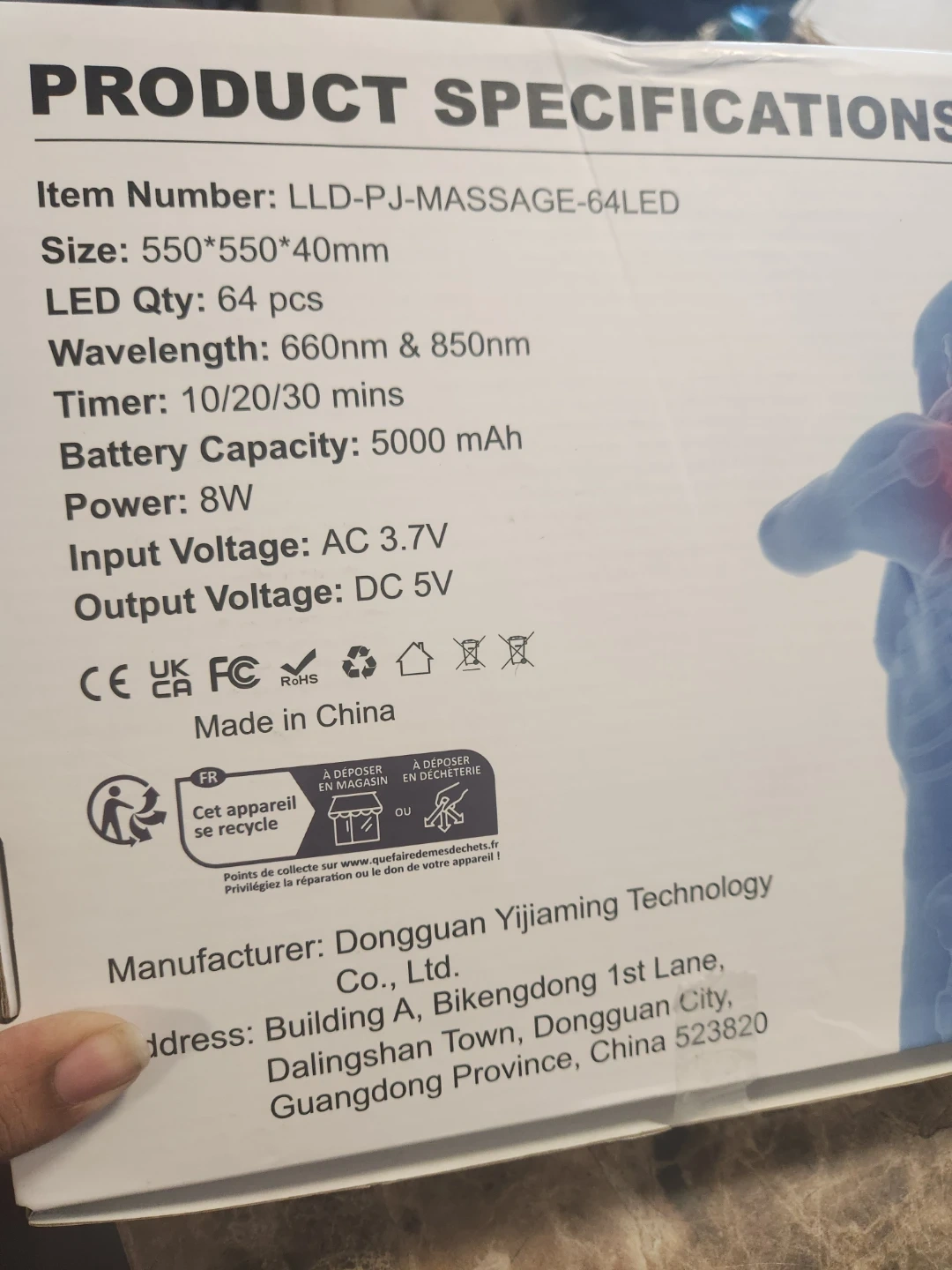 This is a shoulder wrap with LED light therapy and vibration. It has 3 timer settings and a rechargeable controller. The battery capacity is 5000 mAh with 8W power. Price is firm plz. Pick up midland and Danforth or 401 bay street or stc mall