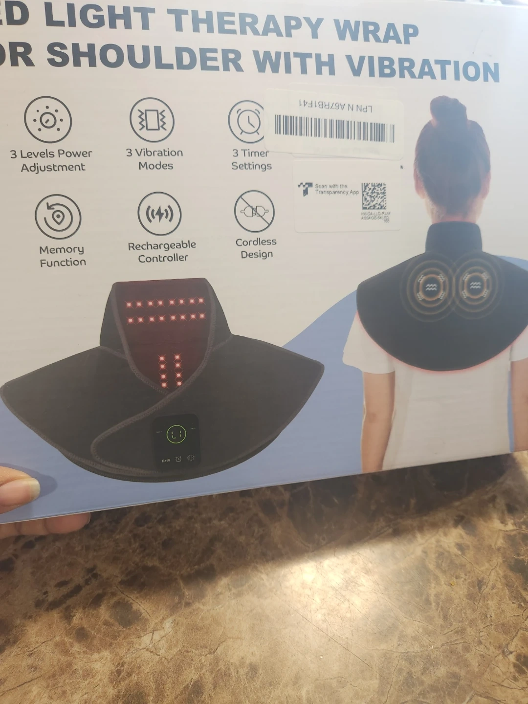 This is a shoulder wrap with LED light therapy and vibration. It has 3 timer settings and a rechargeable controller. The battery capacity is 5000 mAh with 8W power. Price is firm plz. Pick up midland and Danforth or 401 bay street or stc mall