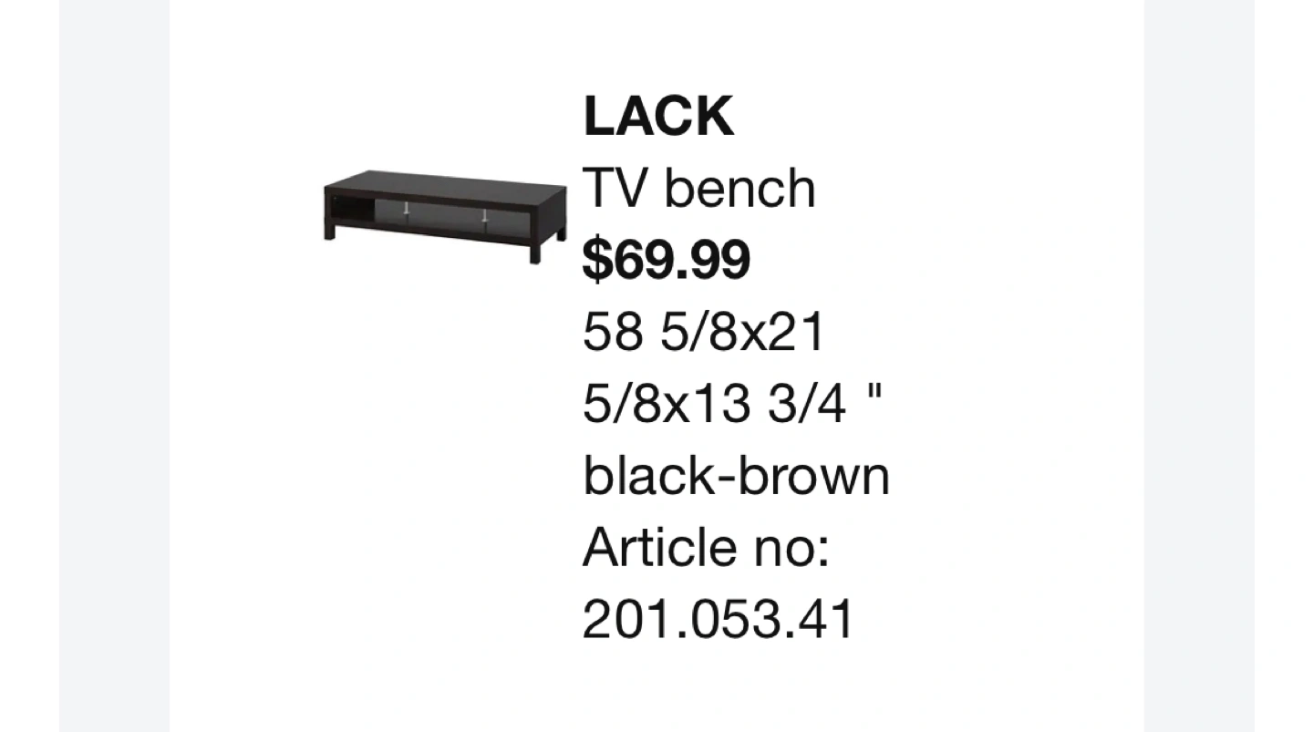 Buy & SellTv table ikeaTv table ikea$30Like new, dark brown tv table. Please see last photo for size. For pick up tomorrow of 19 Dec.WHERE TO MEET400 Yonge StView MapSELLERGhadeerBay Street Corridor635 reviews1 chats·2 favorites·115 viewsSEND CHAT TO SELLERHi Ghadeer! I’m interested in your listing.Hi Ghadeer! I’m interested in your listing.Get the Karrot app to chatSign In to chat