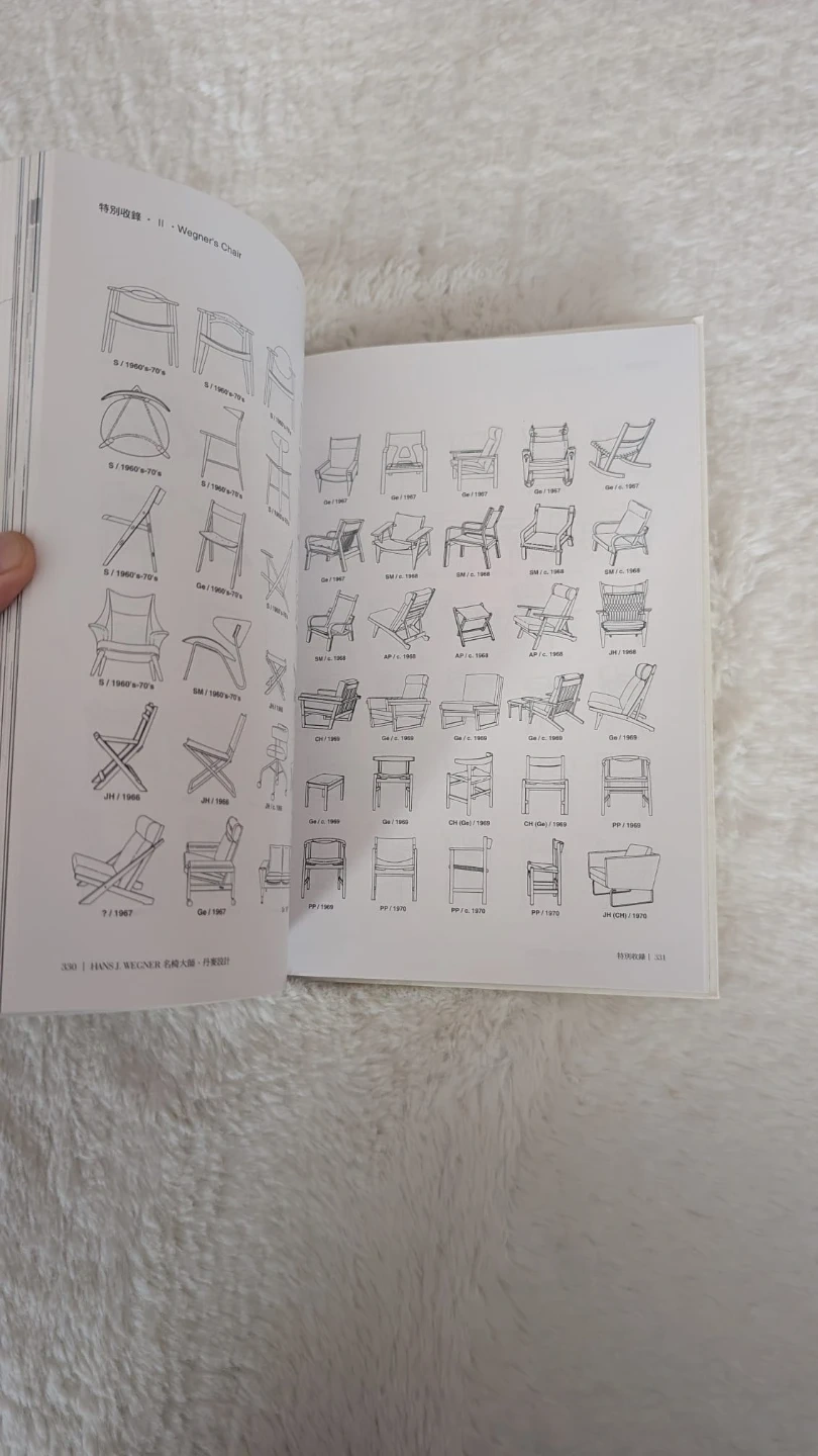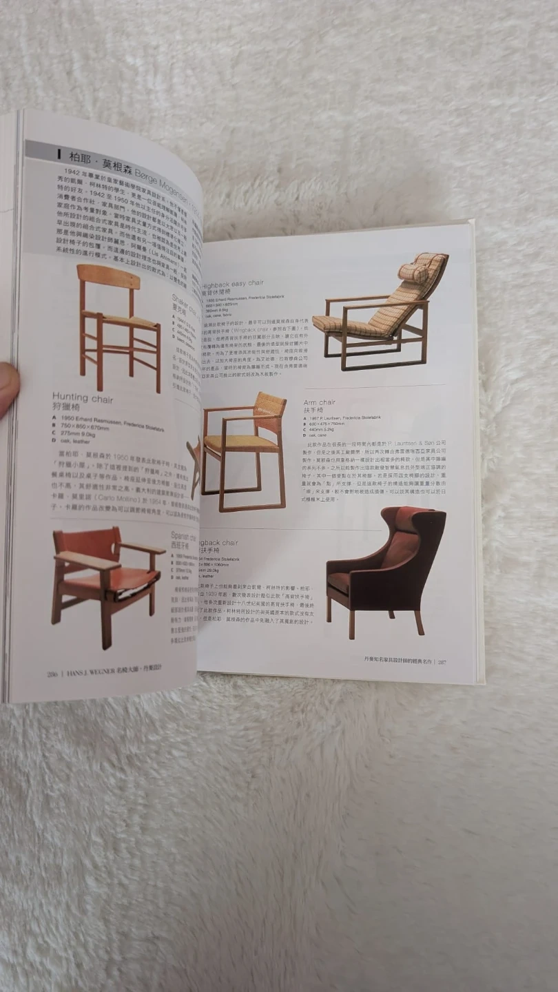 This book features various chair designs by Hans J. Wegner. It showcases a collection of his iconic furniture pieces. Includes detailed images and descriptions of each design. A great reference for furniture enthusiasts! I believe it is in Mandarin