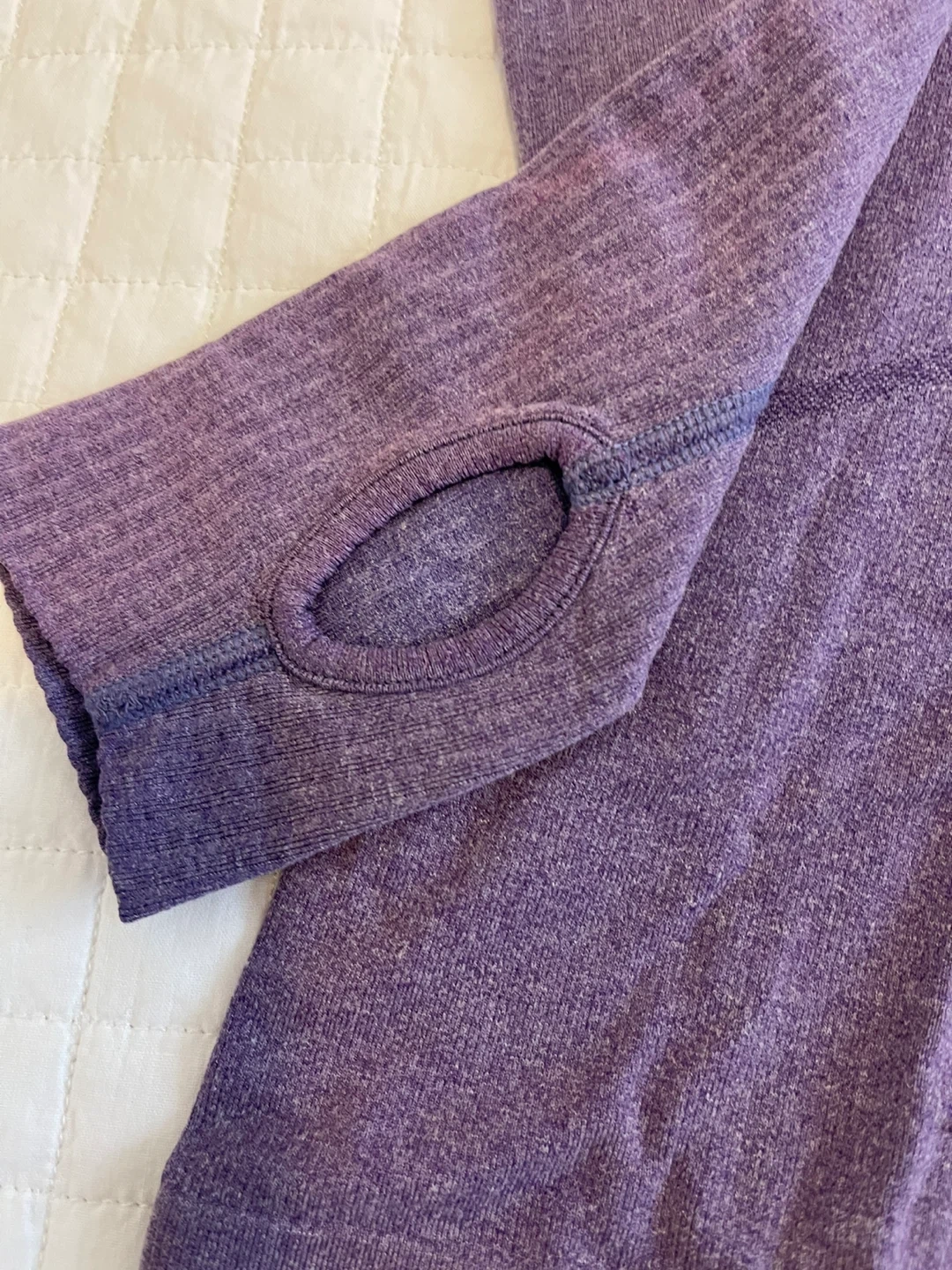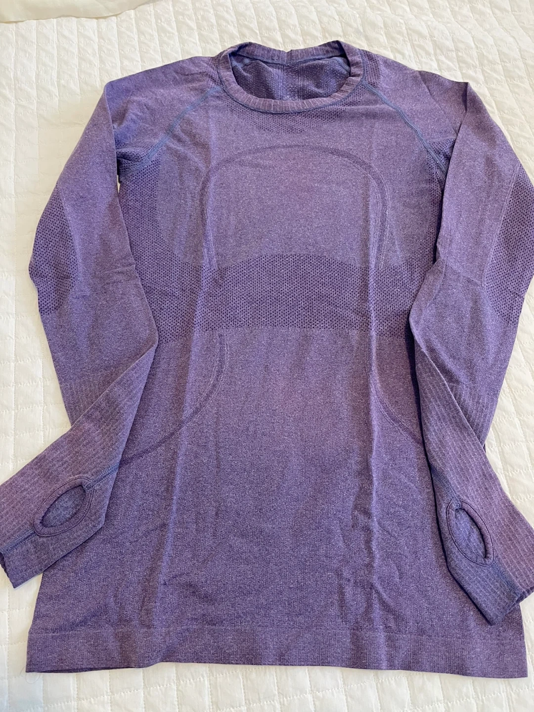 This Lululemon long sleeve top is a size 6. It features thumbholes for extra coverage. It's a great top for workouts or casual wear.