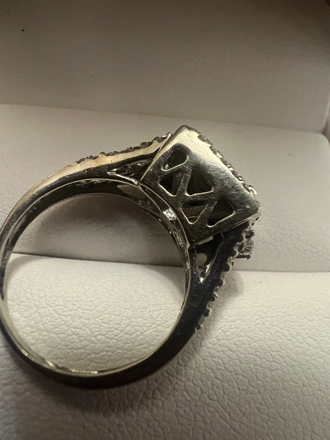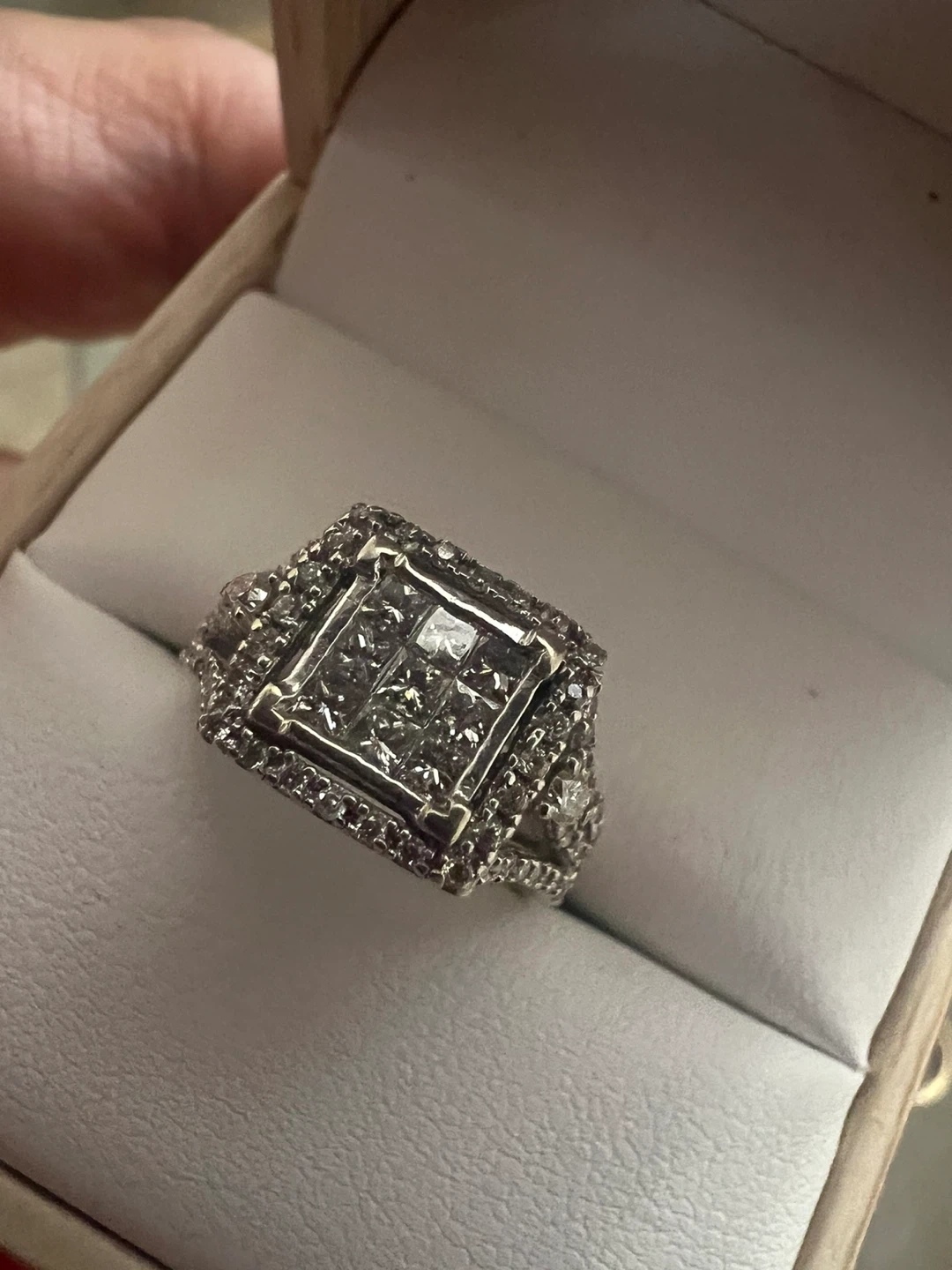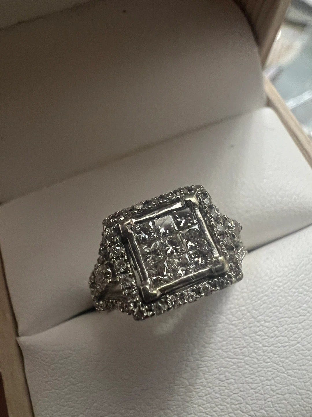 Selling a beautiful 10 k white gold princess cut diamond ring. It's in great condition and comes in a box! The ring is silver in colour.