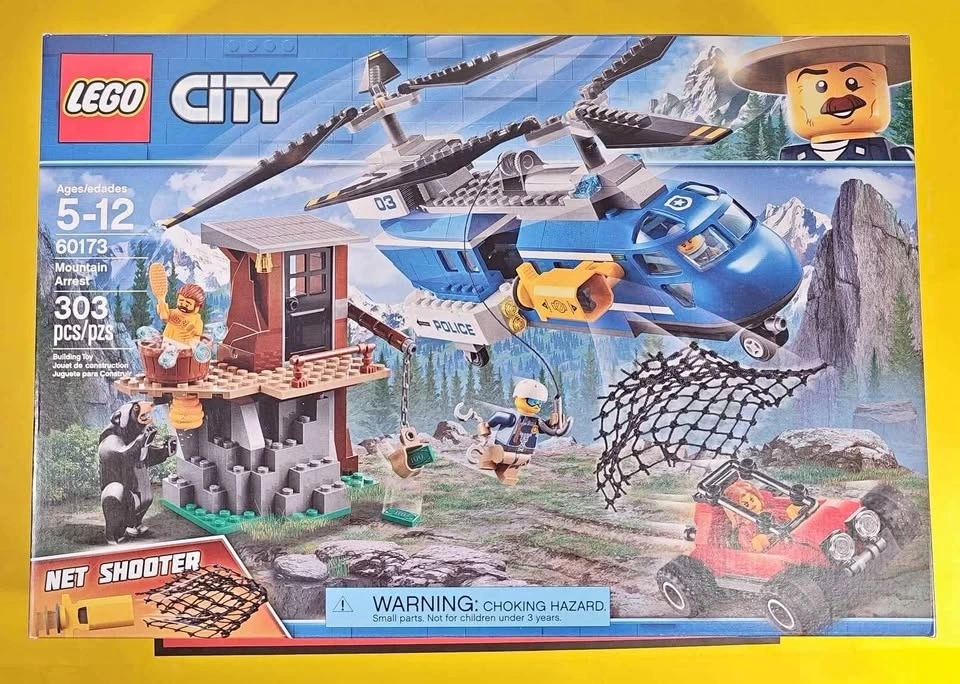 Catch the Crooks with LEGO City 60173 Mountain Arrest! Embark on a thrilling chase with this action-packed set, perfect for young builders and collectors. Set Highlights: Includes 4 minifigures—a police pilot, police officer, crook, and a disguised crook—each with unique accessories. The police helicopter features a spinning rotor, opening cockpit, and a net shooter. The crooks’ cabin includes a secret compartment, a working door, and a tree with a beehive. Accessories include a police ATV, gold bars, a chainsaw, and handcuffs. Let me know if you're interested!