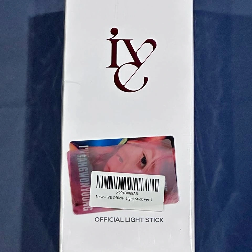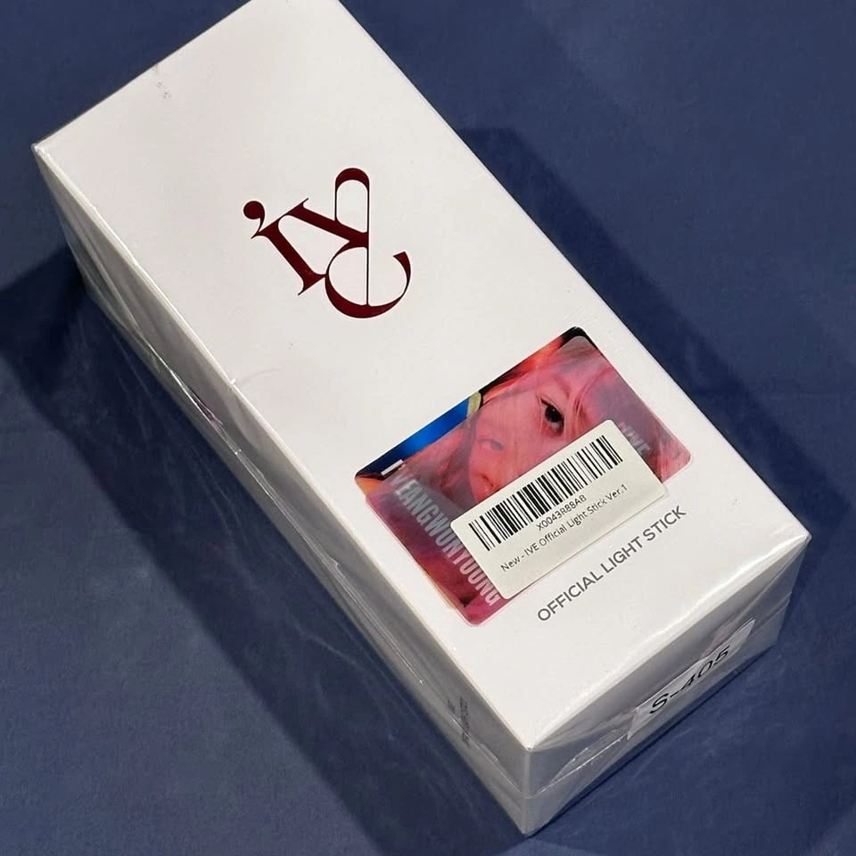 Get your official IVE Light Stick Ver. 1 for all your fan events and concerts. This light stick is brand new and sealed in its original packaging, perfect for any DIVE. It features multiple light modes: IVE MODE, IVE BLINK, and CUPID MODE. The design is sleek and features the IVE logo. This authentic fan merchandise was manufactured in Korea by FANLIGHT Co. Ltd. and is an essential item for showing your support.
