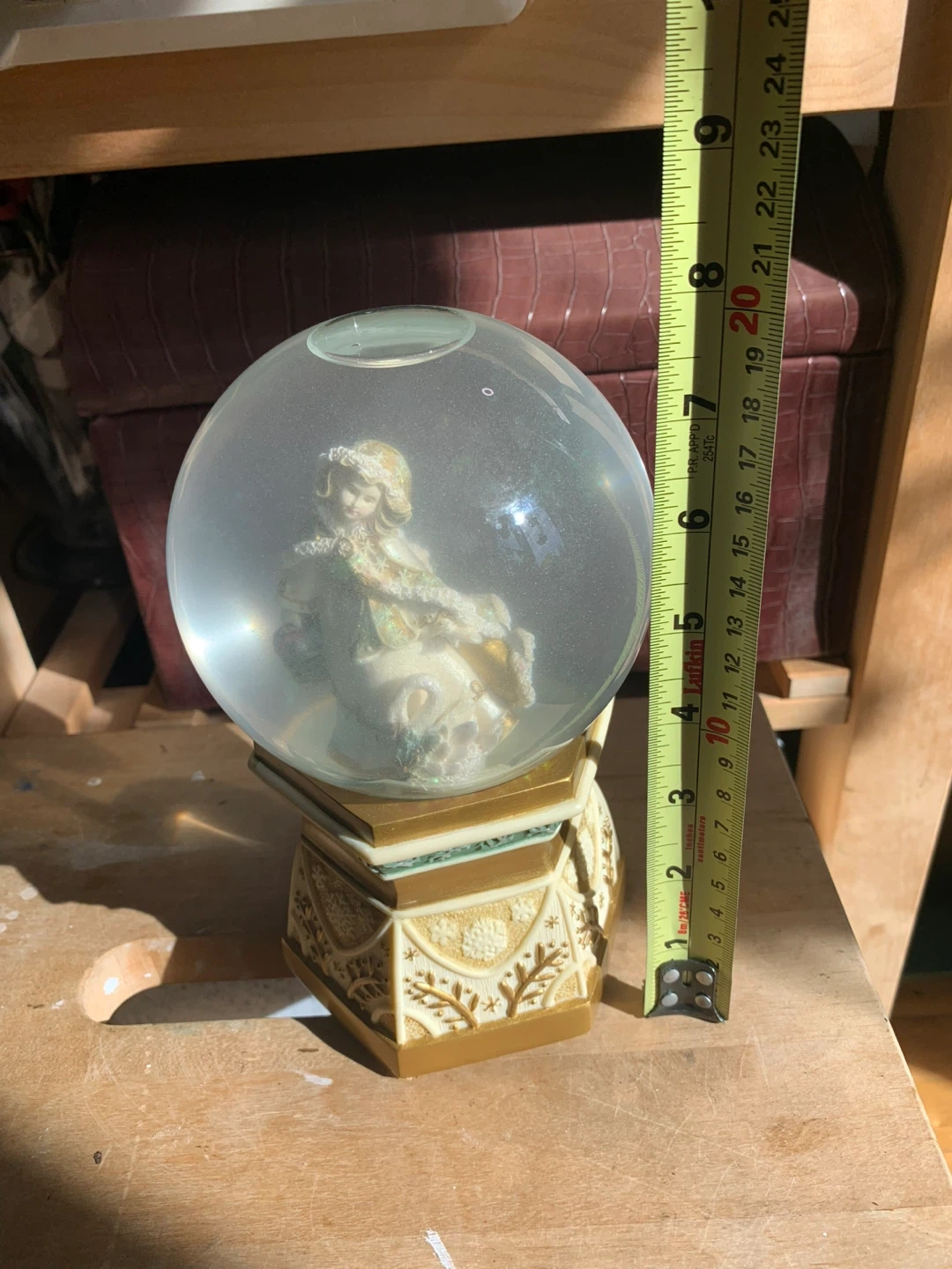 Heavy Porcelain Musical Snow Globe (lady with swan) decoration