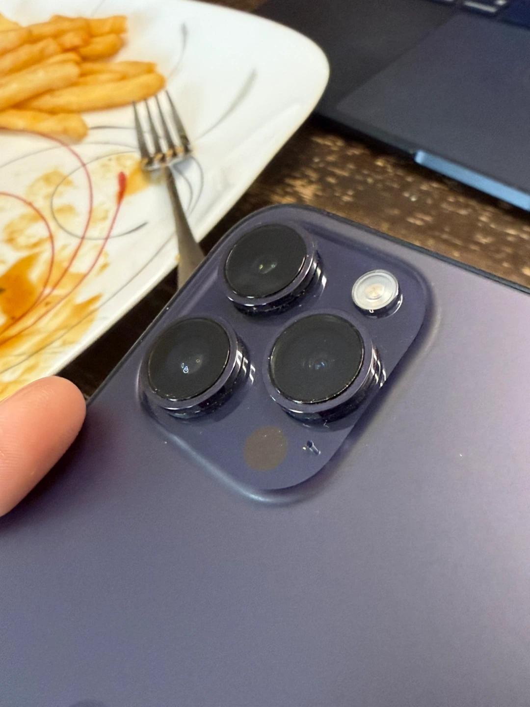 Selling a purple iPhone 14 Pro. There are some cracks on the screen and wear on the edges, as shown in the photos. Still works great! free case