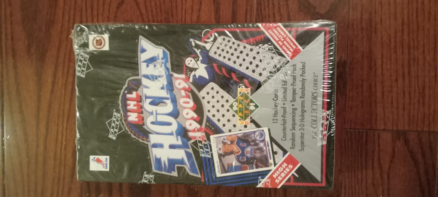 Selling a brand new, sealed box of Upper Deck 1990-91 NHL Hockey Cards! This is from The Collector's Choice series and contains 12 hockey cards. It's counterfeit-proof, tamper-proof, and randomly packed with Superstar 3-D holograms. May contain rookie players such as Jaromir Jagr, Sergei Federov, Rob Blake, Mats Sundin, etc. These cards may be of some value when graded.