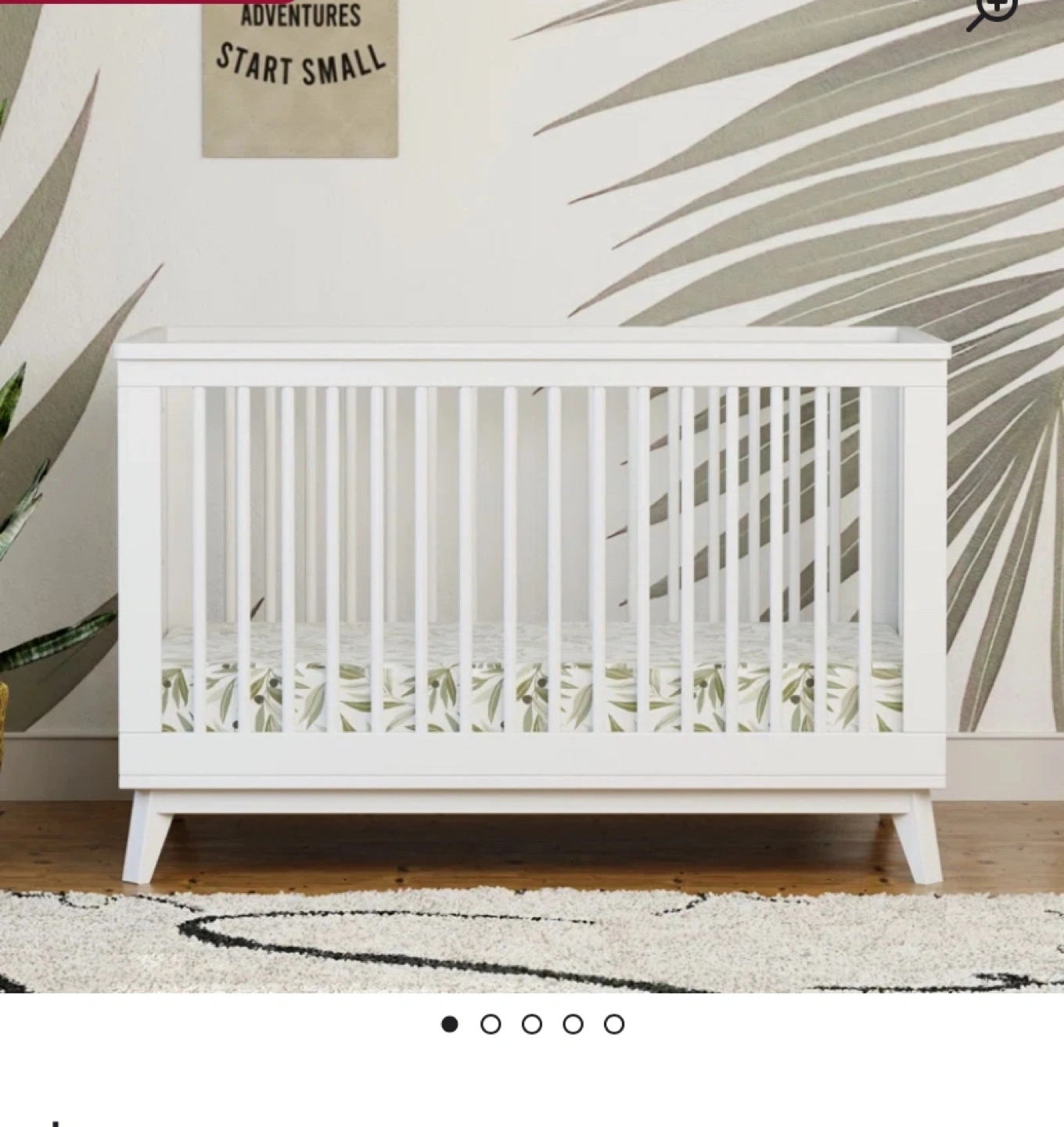 Convertible crib with a toddler bed attachment. White finish.