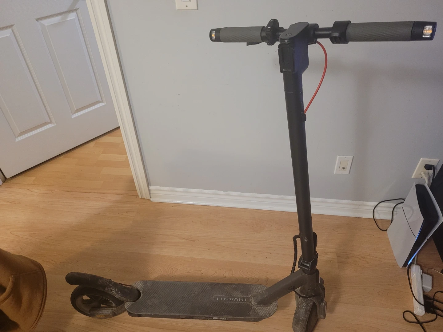 This is an INNOVANTI electric scooter. It features a digital display on the handlebars.